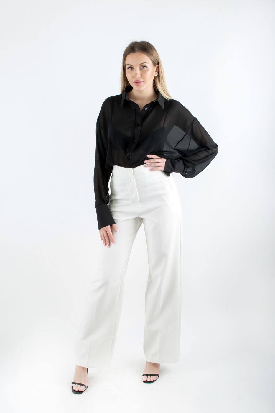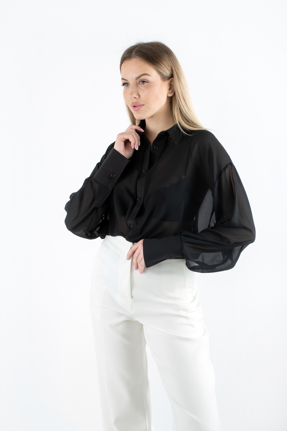 Відкрийте для себе елегантність і комфорт з нашою жіночою шифоновою блузою. Ця стильна чорна блуза стане ідеальним доповненням до вашого повсякденного гардеробу. Однотонний дизайн підкреслює витонченість, тоді як легкий шифон забезпечує комфортність носіння у будь-який сезон. Практична застібка на ґудзиках додає класичного шарму, роблячи блузу універсальною опцією для створення різноманітних образів. Незалежно від того, чи прямуєте ви на прогулянку, чи на офіційну зустріч, ця блуза добре поєднується як з джинсами, так і зі спідницями, даруючи вам впевненість і стиль.