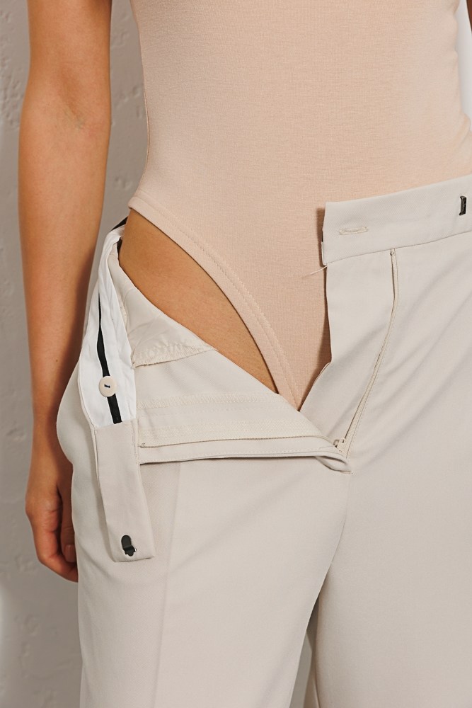 З таким модним боді твої звичні вбрання заграють новими акцентами завдяки його оригінальному фасону. Модель, зшита із м`якого трикотажу, йде вгорі з однією широкого бретелею і доповнена тонкою, пришитою навхрест бретелею, утворюючи спереду виріз крапелькою. Верх виробу та краї широкої бретелі обшиті окантовкою в тон. Низ боді йде з високими вирізами і застібається на дві потаємні кнопки. У парі зі стильними штанами та спідницями з низькою посадкою ти отримаєш трендовий, ефектний look.