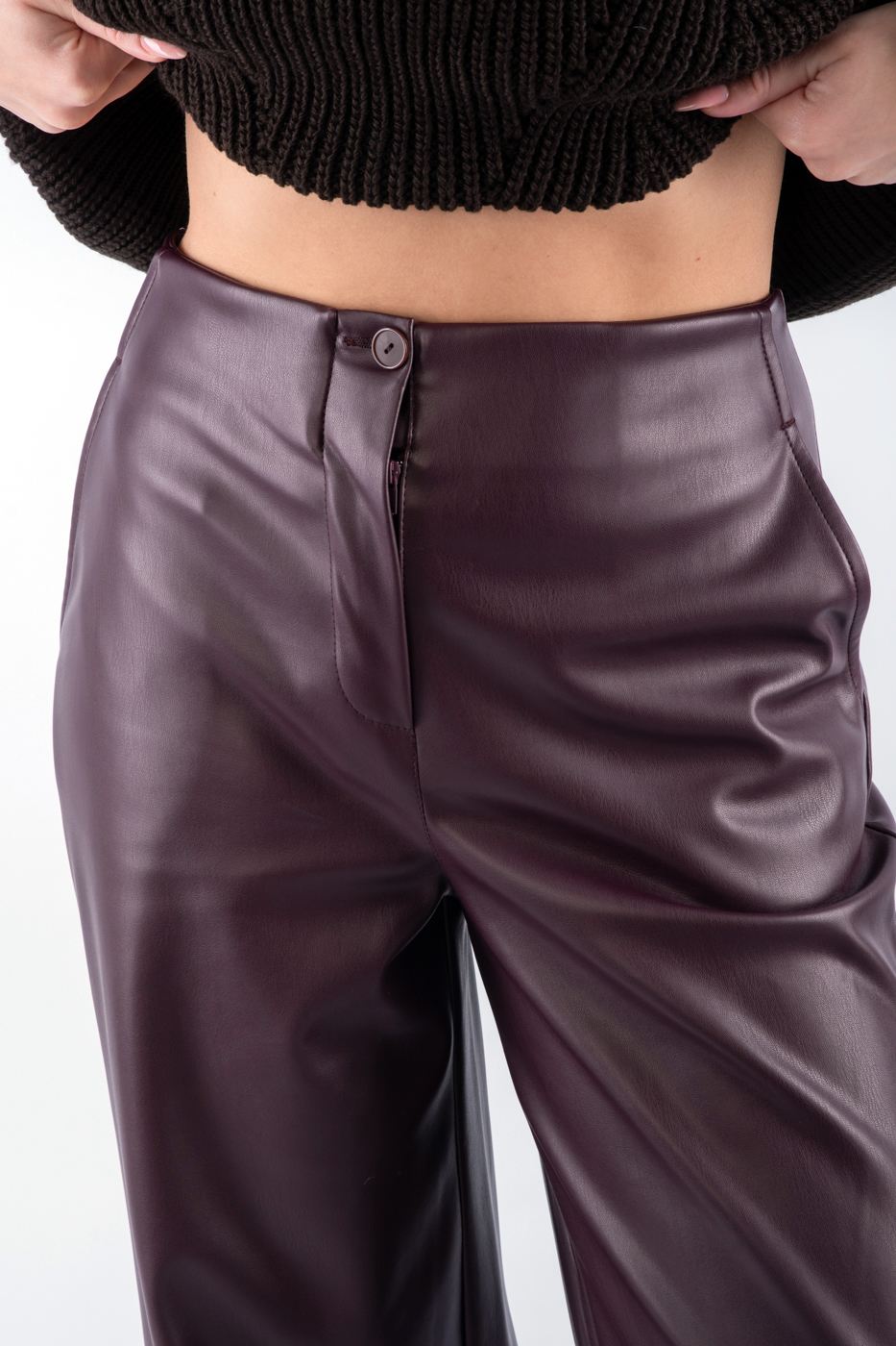 Представляємо вам стильні жіночі брюки з високою посадкою, виготовлені з високоякісної екошкіри. Ці чорні однотонні брюки ідеально підходять для створення повсякденного образу восени і стануть незамінним елементом у вашому гардеробі. Завдяки широкому фасону flare, вони забезпечують комфорт і додаткову елегантність вашому стилю. Екошкіра гарантує не тільки модний вигляд, але й етичність вашого вибору. Поєднуйте ці брюки з вашими улюбленими верхами для створення стильних осінніх образів.