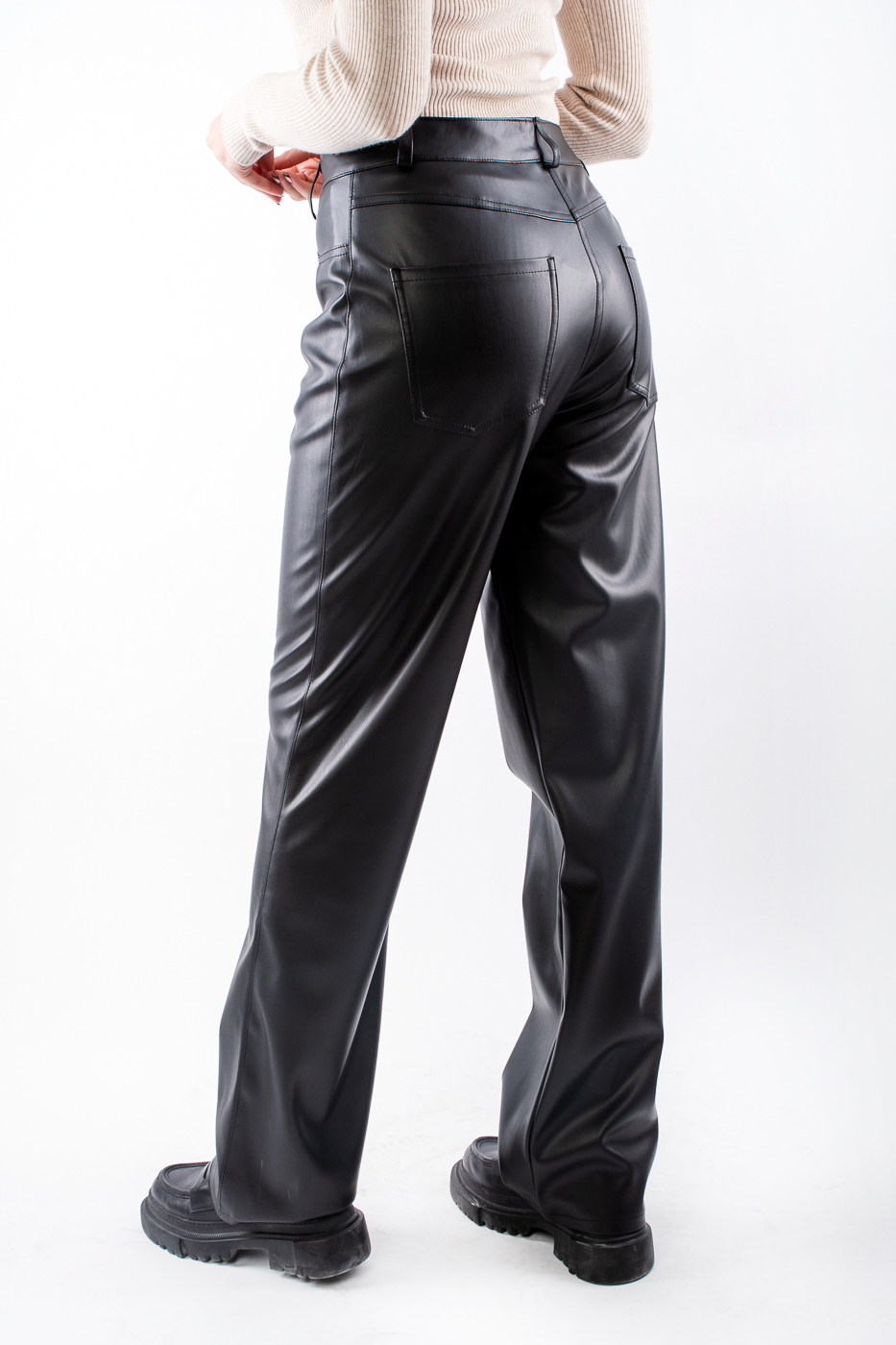Ось ваші ідеальні штани для створення стильного образу – наші жіночі чорні прямі штани з екошкіри з глибокими кишенями ззаду та кокеткою! Ці штани виготовлені з високоякісної екошкіри, що не тільки підкреслює ваш стиль, але й забезпечує комфортне носіння. Глибокі задні кишені додають практичності, а кокетка забезпечує ідеальну посадку, акцентуючи ваші форми. Ці штани чудово підійдуть для різних випадків – від повсякденних до вечірніх виходів, дозволяючи легко комбінувати їх з різними верхами та аксесуарами.