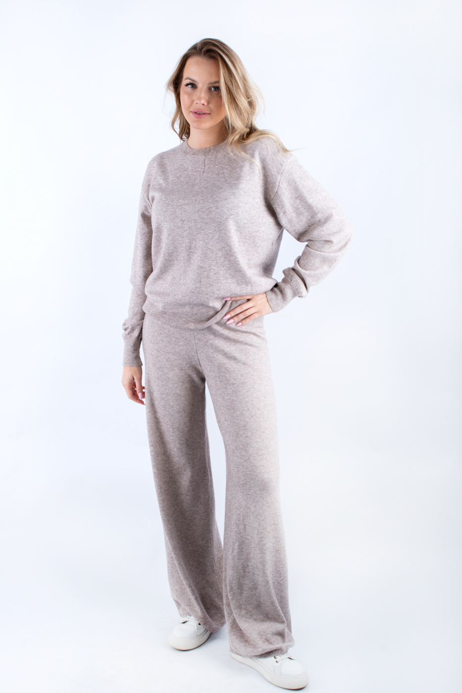 70163 Штани палаццо вʼязані бежеві
