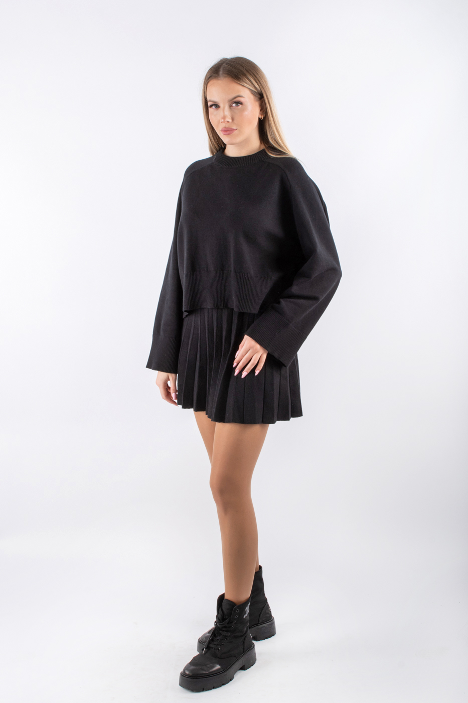 Елегантний чорний жіночий джемпер з кашеміру стане ідеальним вибором для створення стильного повсякденного образу цієї осені. Укорочений силует і широкі рукави додають моделі сучасного вигляду, а декоративна в'язка підкреслює вишуканість. Завдяки високоякісному кашеміру, джемпер забезпечує неперевершений комфорт і тепло в прохолодні дні, роблячи його незамінним елементом жіночого гардероба цього сезону. Ідеально поєднується з джинсами чи спідницею, додаючи вашому образу нотки шарму та витонченості.