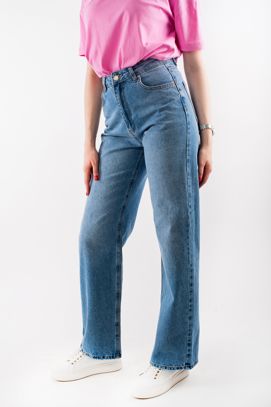 Обираючи ці джинси, ви отримаєте надійний і практичний одяг на кожен день. У них гармонійно поєднані класичний стиль і сучасний трендівний колір - блакитний. Ці однотонні джинси мають прямий regular fit крій і високу посадку, що роблять їх елегантнішими та зручнішими. Вони ідеально підходять для повсякденного одягу в демісезоні. В таких джинсах ви завжди будете чувати себе комфортно, адже їх звичайна посадка і стійкість до зносу дозволять вам поєднувати модність і практичність в одному вбранні.