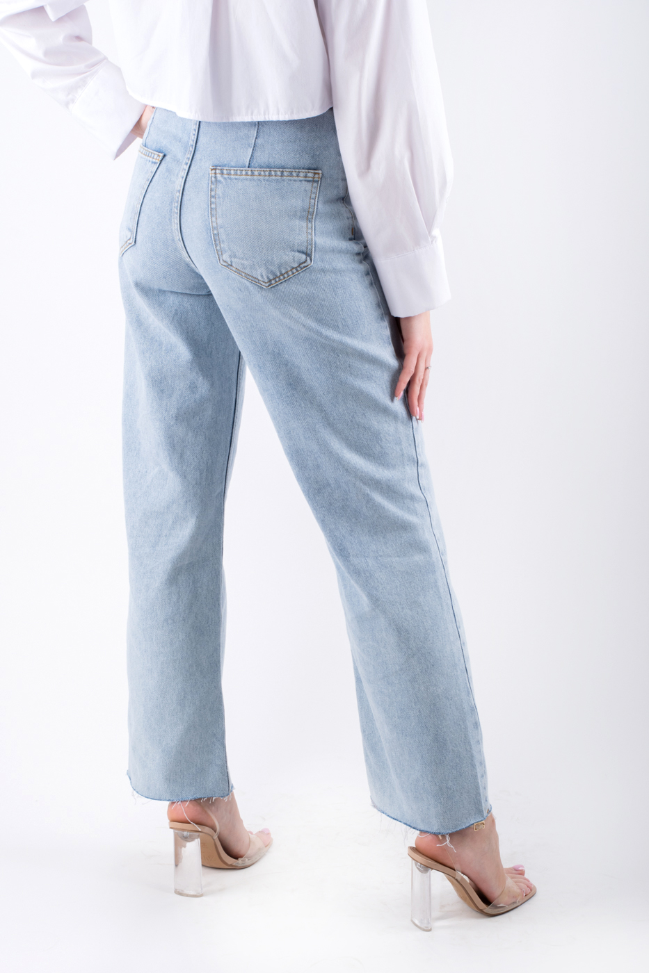 Ці жіночі джинси світло-блакитного кольору стануть ідеальним доповненням вашого базового гардеробу, підкреслюючи вашу індивідуальність і стиль. Виконані у популярному повсякденному стилі, вони мають необроблений край, додаючи їм легкості та невимушеності. Джинс однотонний, підходящий для будь-якої нагоди, створений з урахуванням актуальних модних тенденцій. Regular fit фасону з високою посадкою вдало підкреслює переваги фігури, а прямі лінії надають елегантності силуету. Всесезонні, вони дозволяють відчувати комфорт незалежно від погоди, а наявність ременя додає практичності та завершеності образу.