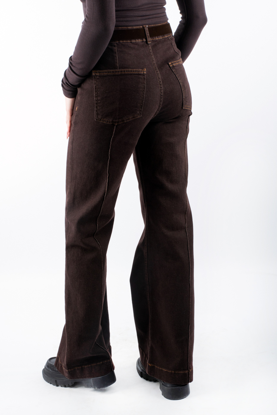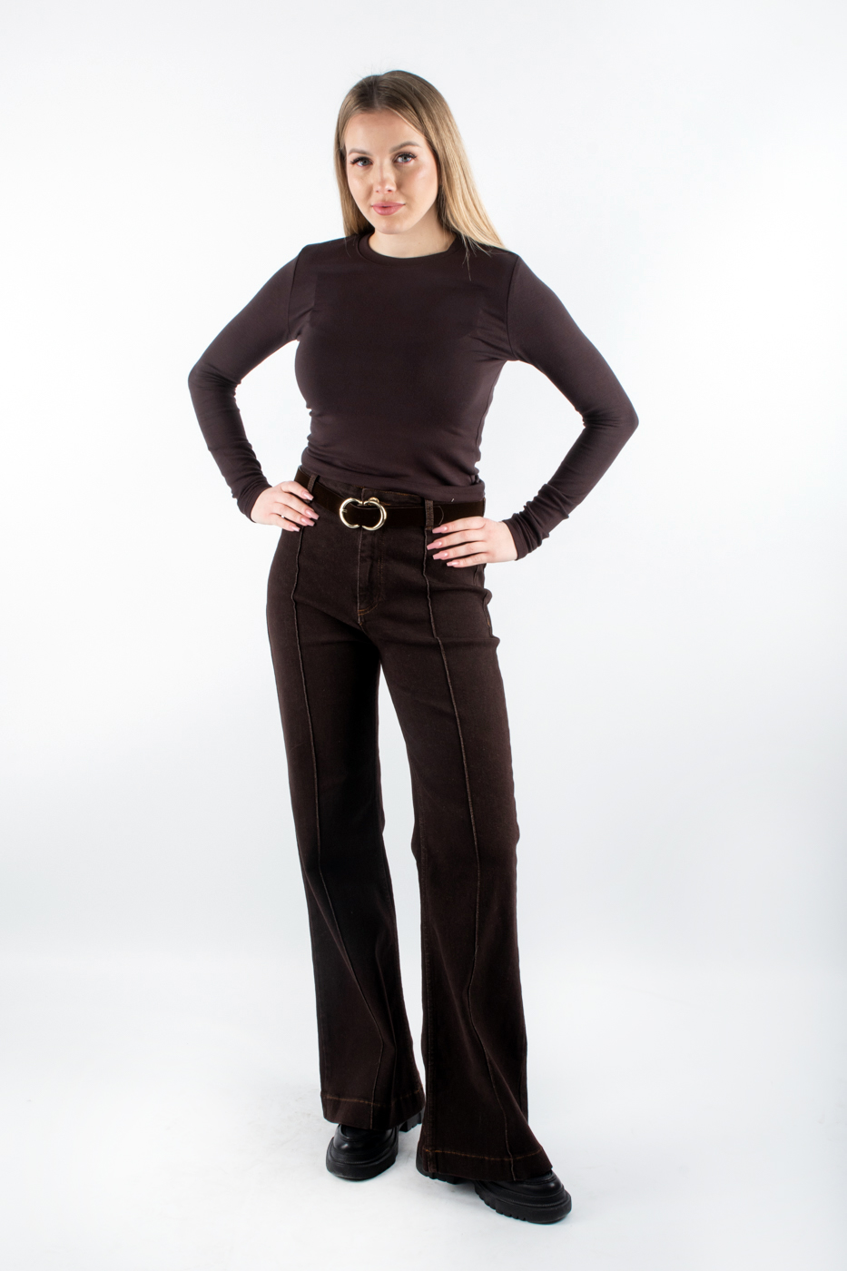 Представляємо наші стильні жіночі демісезонні джинси кльош коричневого кольору, які стануть незамінним елементом вашого повсякденного гардеробу. Ці однотонні джинси з високою посадкою і модними швами нададуть вашому образу елегантності та сучасності. Виконані з високоякісного джинсу, вони забезпечують комфорт і зручність протягом усього дня, а їх класичний фасон відмінно поєднується як з повсякденними футболками, так і з більш офіційними блузами. Оберіть ці джинси як основу для створення бездоганного жіночого образу цієї осені!