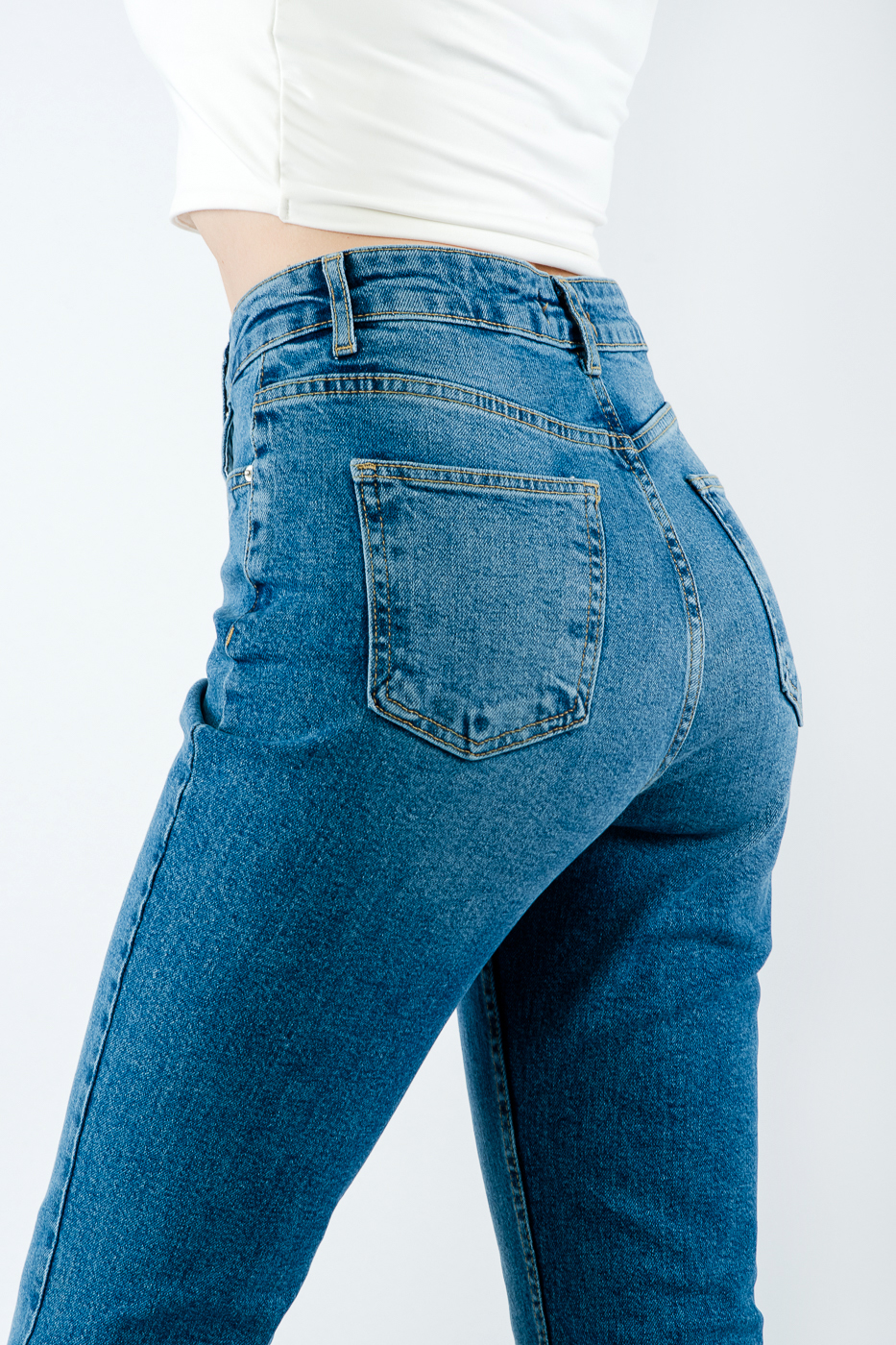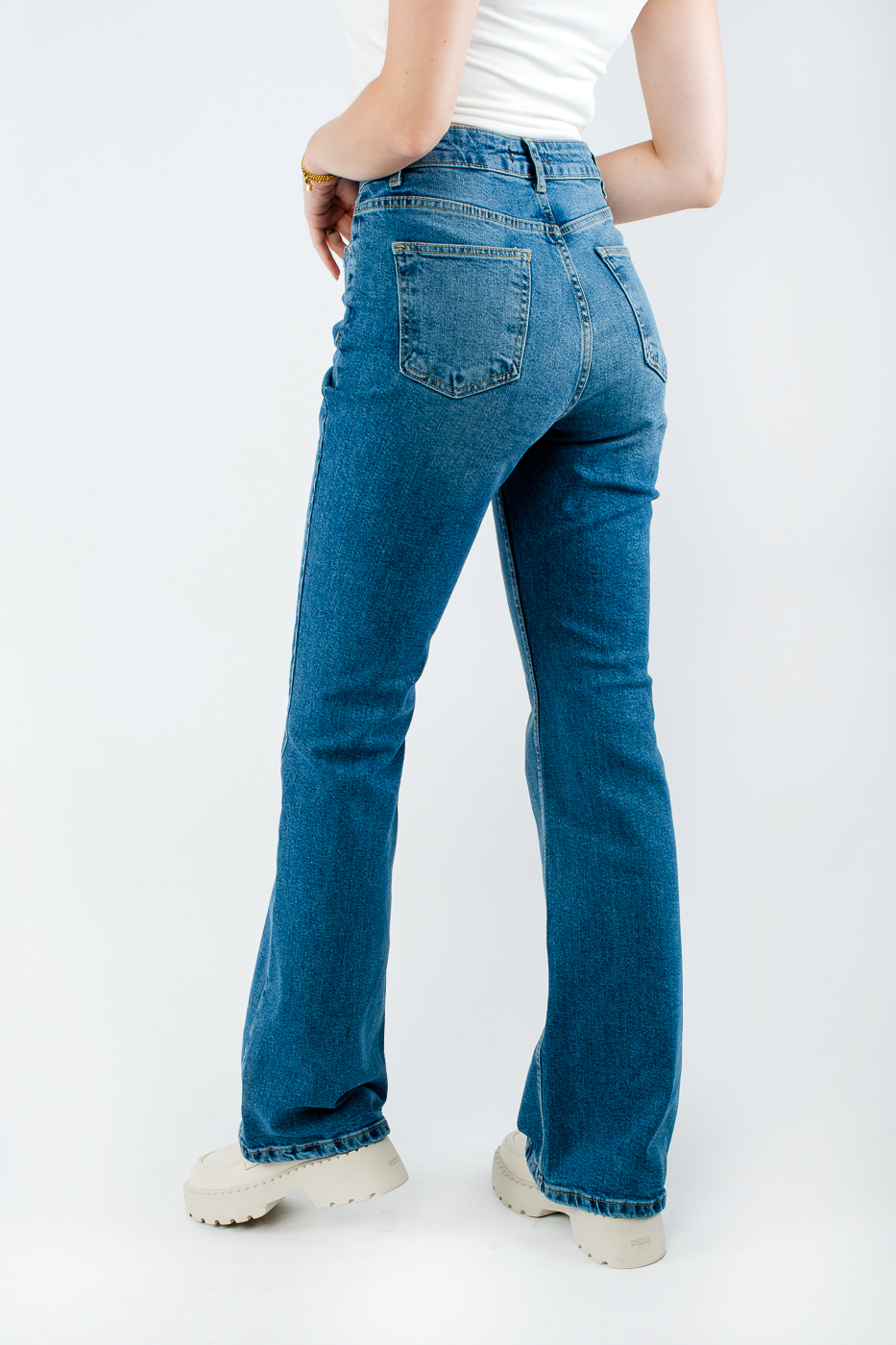 Дякуючи присутності лайкри в складі, ці джинси забезпечать м'якість і еластичність, що робить їх ідеальними для активного повсякденного життя. Розкльошені штанини додають образу нотку невимушеного шарму та доповнюють ваш стиль сучасною актуальністю.
