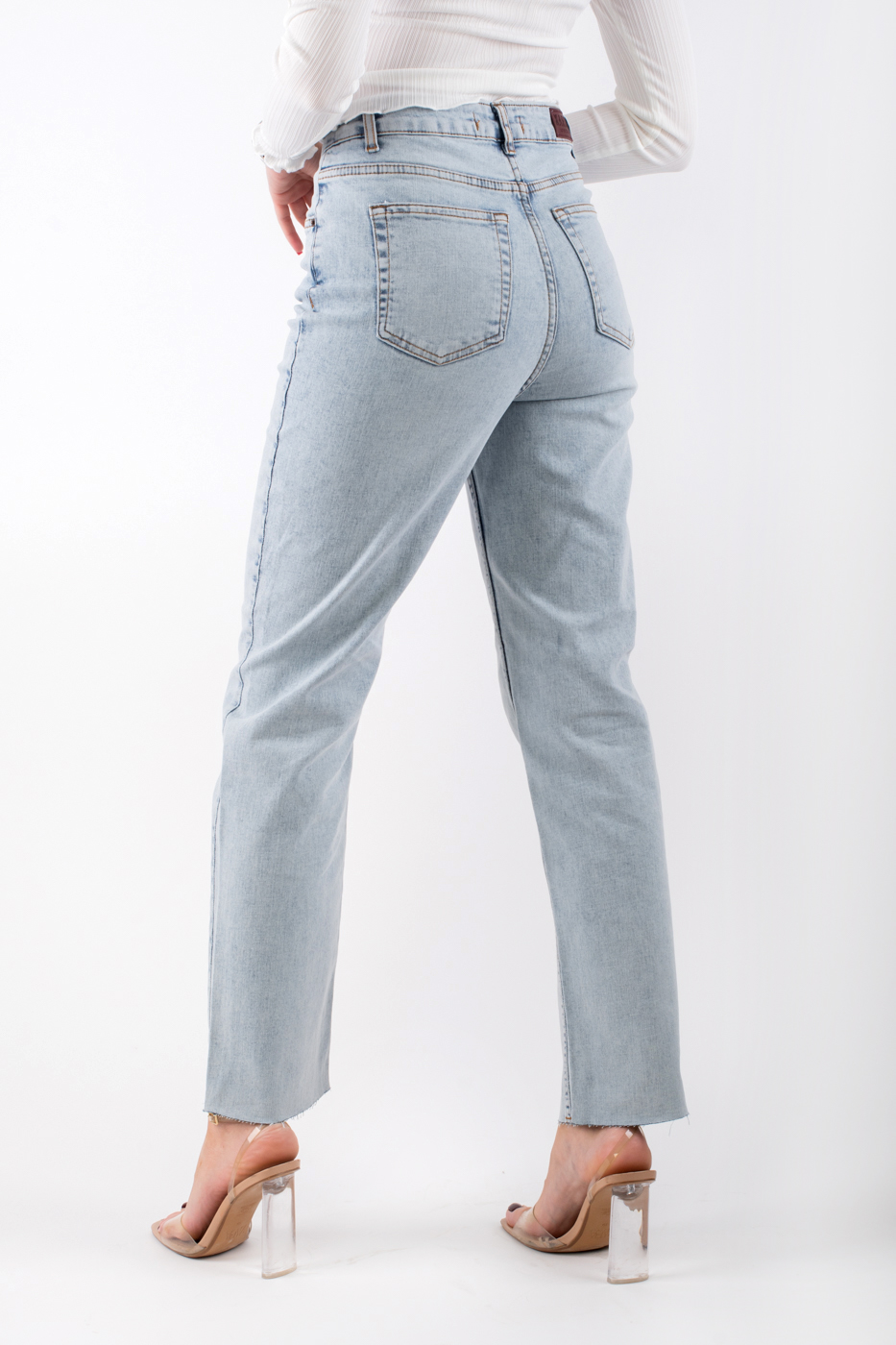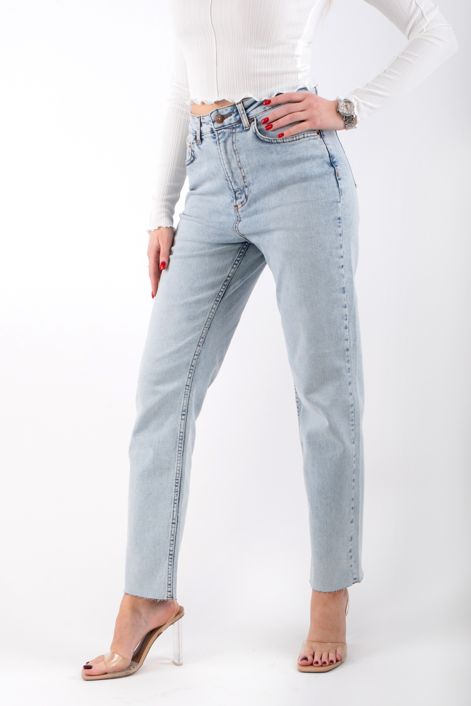D-418 Джинси МОМ з необробленим низом світло-блакитні