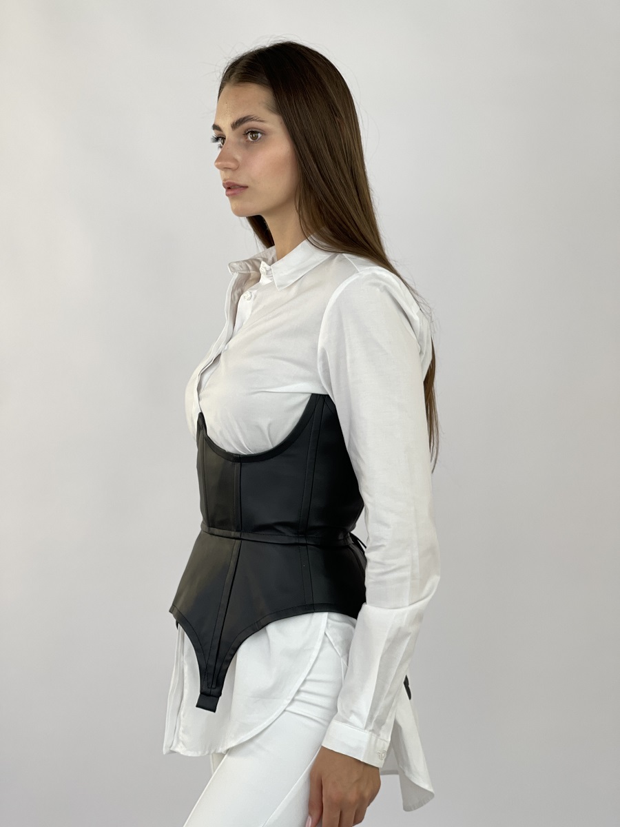 10857 Корсет подовжений з екошкіри чорний