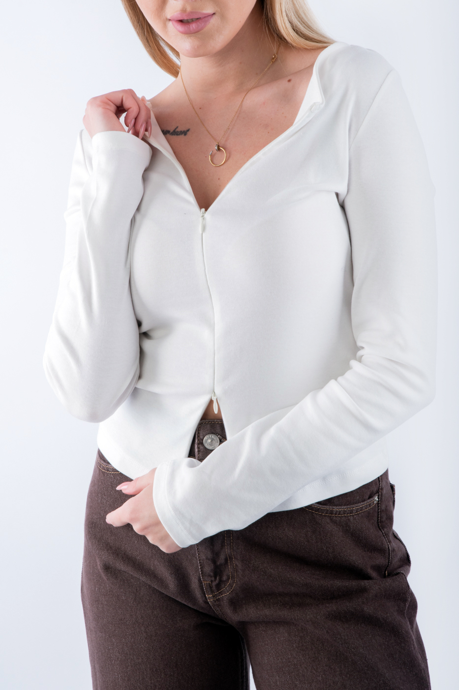 Представляємо вашій увазі стильний жіночий лонгслів у білому кольорі, який відмінно доповнить ваш повсякденний гардероб. Цей демісезонний лонгслів виготовлений з якісного матеріялу з рубчиком і привертає увагу витонченим дизайном у полоску. Зручна змійка надає неповторного шарму та робить цю річ ідеальним вибором для прохолодної погоди. Легкість і комфорт поєднуються в цьому виробі, що робить його незамінним елементом гардеробу сучасної жінки, яка цінує стиль і практичність.