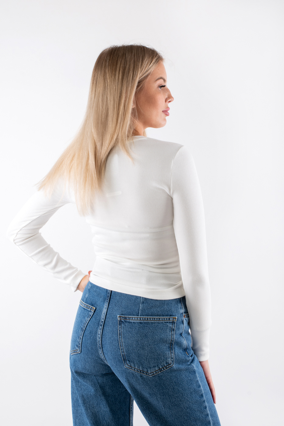- ідеальний вибір для стильних і модних дівчат! Цей розкішний жіночий лонгслів виконаний в білому кольорі, що створює елегантний образ і підходить для будь-яких заходів або повсякденного носіння. Рубчикова в'язка додає кардинальної виразності й зміцнює структуру тканини на довгий час. Модель відмінно підійде на демісезон, ідеально поєднується з джинсами, шортами, спідницями та іншими елементами гардеробу. Не втрачайте можливість доповнити свій гардероб цим чудовим лонгслівом в рубчик!