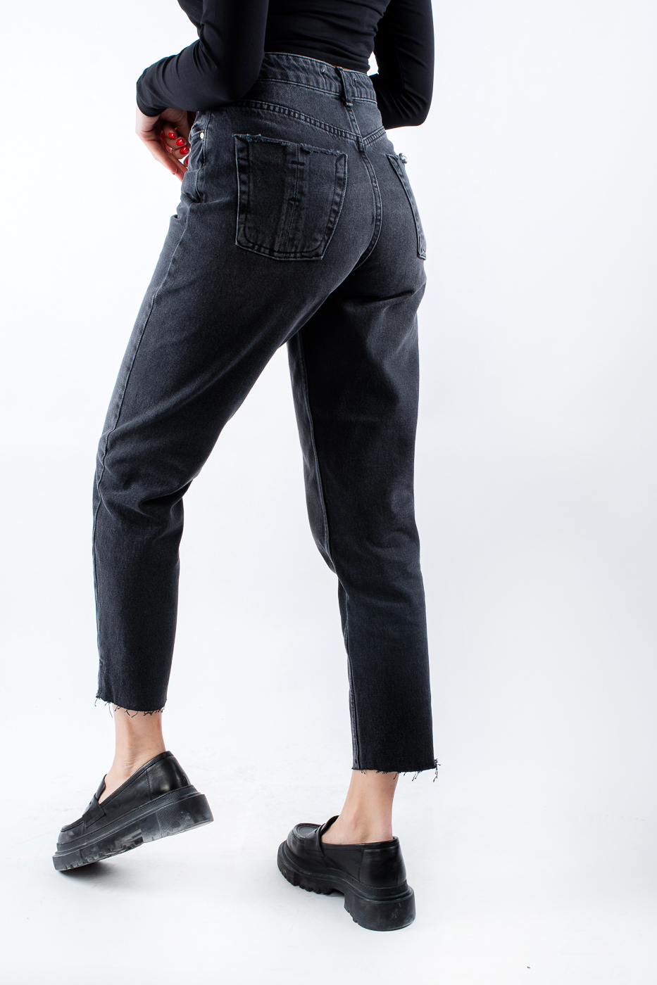 Чорні джинси жіночі "mom" з розрізами внизу штанини та необробленим краєм - це стильний і модний вибір для вашого гардеробу. Крій "mom" з високою посадкою та вільними штанинами надає їм вінтажного шарму, а розрізи та необроблений край додають сучасності. Чорний колір робить їх універсальними, і вони легко поєднуються з різними верхами та аксесуарами, даруючи вам стильний образ.