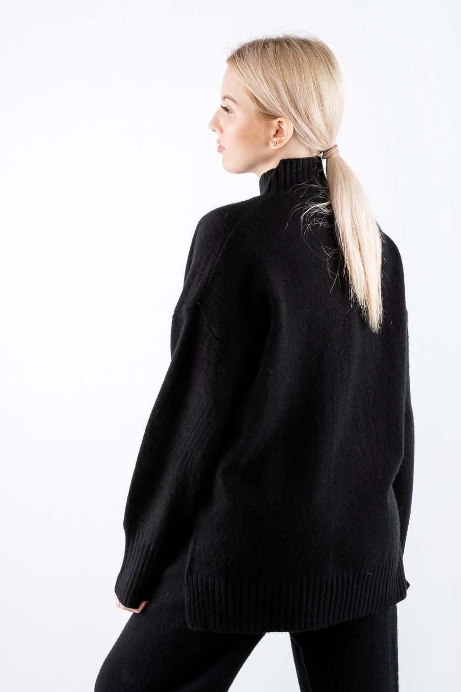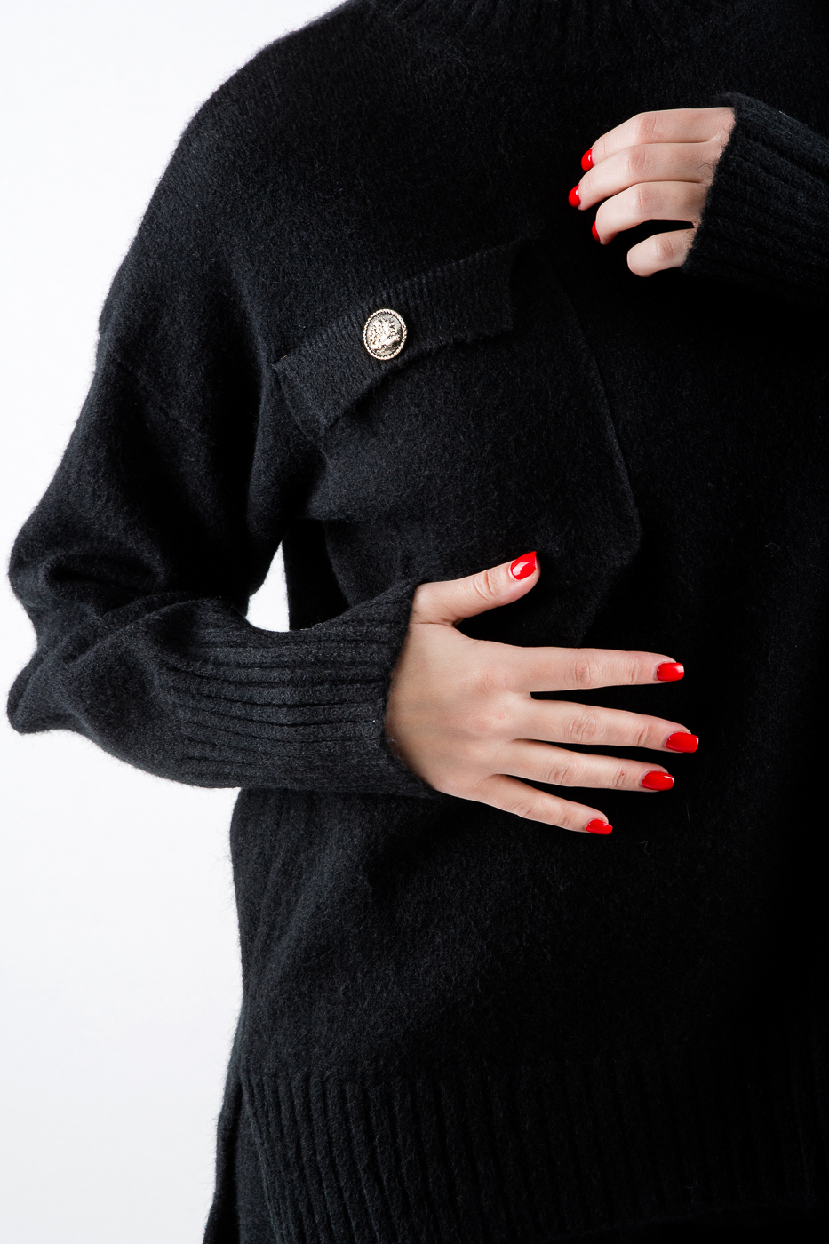 Цей жіночий в'язаний костюм - ідеальний вибір для осіннього сезону, коли потрібно поєднувати комфорт і стиль. Виготовлений із суміші вовни і бавовни, цей костюм дарує вам відмінний теплий обгортку під час прохолодних днів. Светр у комплекті має елегантну горловину стійку, яка надає образу шарму та додаткового захисту від вітру. Асиметрична кишеня светра додає оригінальності та модного шарму.