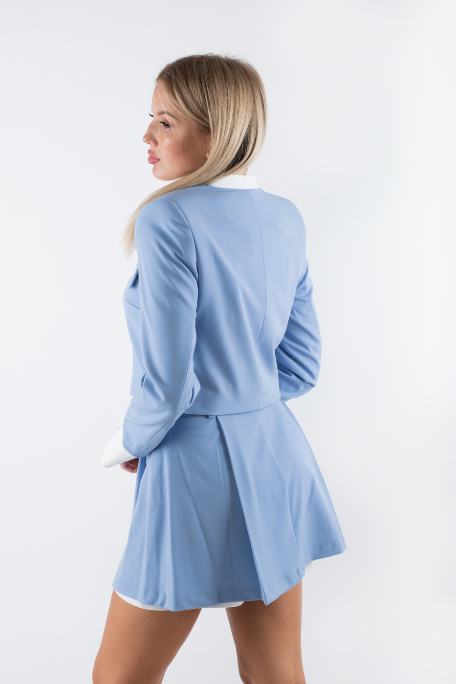 40383 Костюм з жакетом та шортами-спідницею блакитний