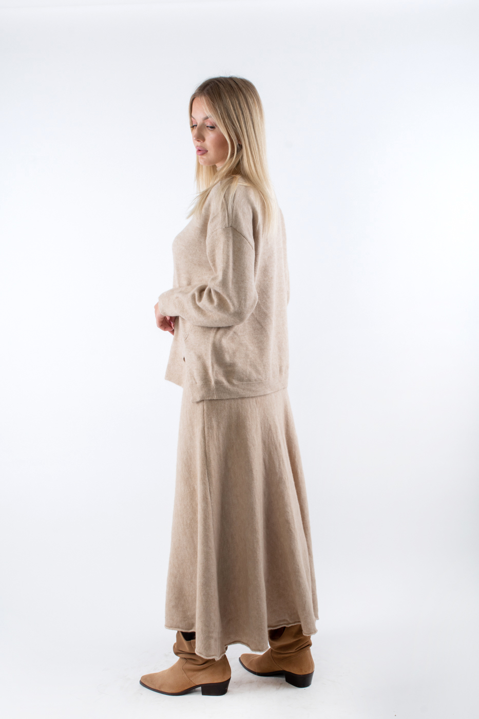 Цей жіночий костюм з джемпером та спідницею стане чудовим доповненням гардеробу для повсякденного носіння в демісезонний період. Виготовлений з якісного кашеміру, в світлому та відтінку бежевого, цей костюм приверне увагу своєю простотою та однотонністю. Молочний колір додає жіночності та ніжності образу, а пара зручних і практичних речей дозволить легко створювати якісні образи на кожен день у стилі casual.