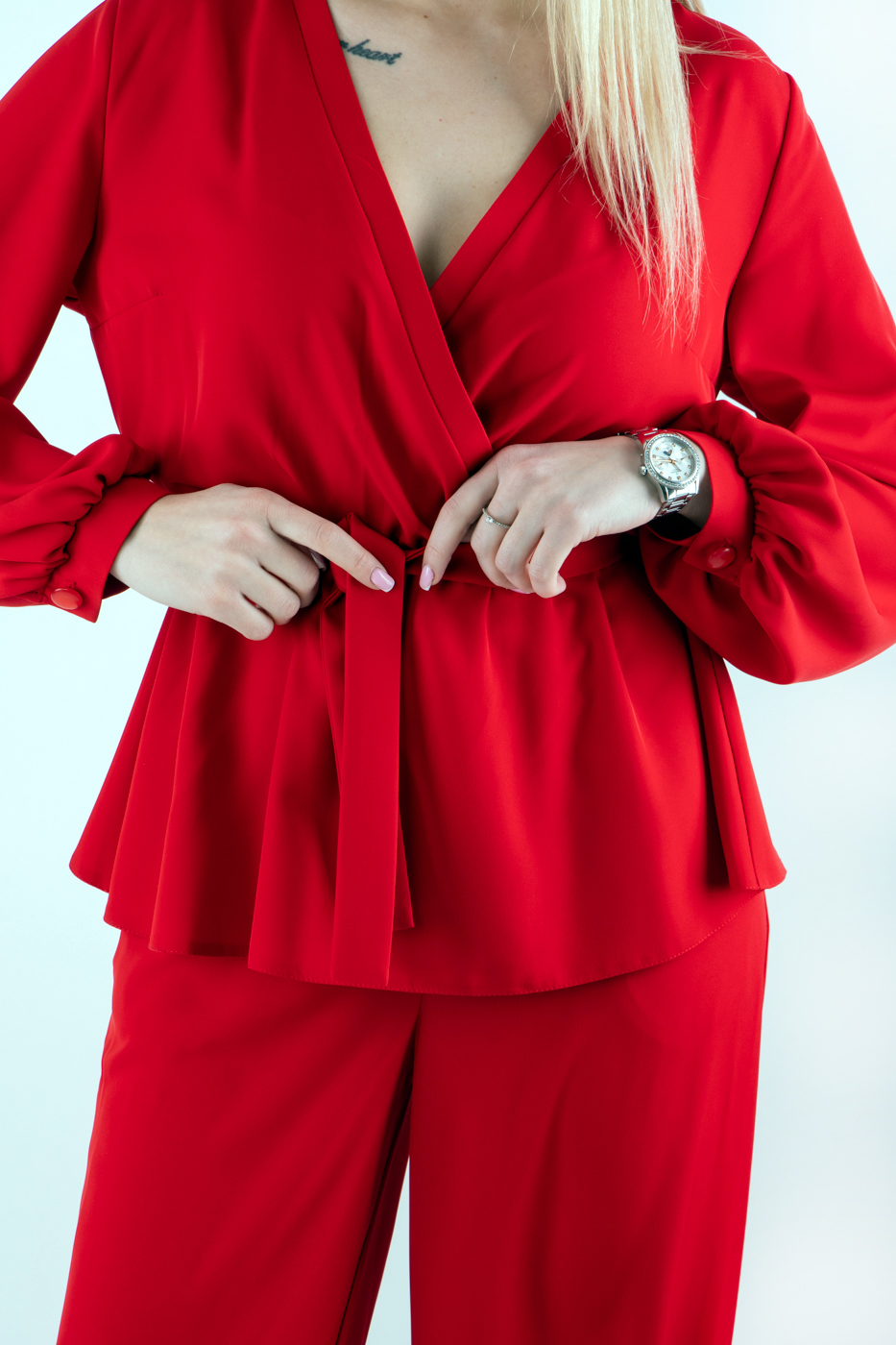 Представляємо вашій увазі елегантний жіночий костюм, який стане незамінною частиною вашого гардеробу на весняно-осінній сезон. Цей брючний костюм виконаний з високоякісної костюмної тканини в насиченому червоному кольорі, додасть яскравості та впевненості вашому повсякденному образу. Класичний крій гармонійно поєднує в собі зручність і стиль, підкреслюючи вашу індивідуальність. Однотонний дизайн робить цей костюм універсальним вибором для будь-якої нагоди, а акцент на деталях забезпечує бездоганну посадку. Ідеальний для роботи, зустрічей або прогулянок містом, цей червоний костюм стане вашим улюбленим комплектом для сучасних образів.