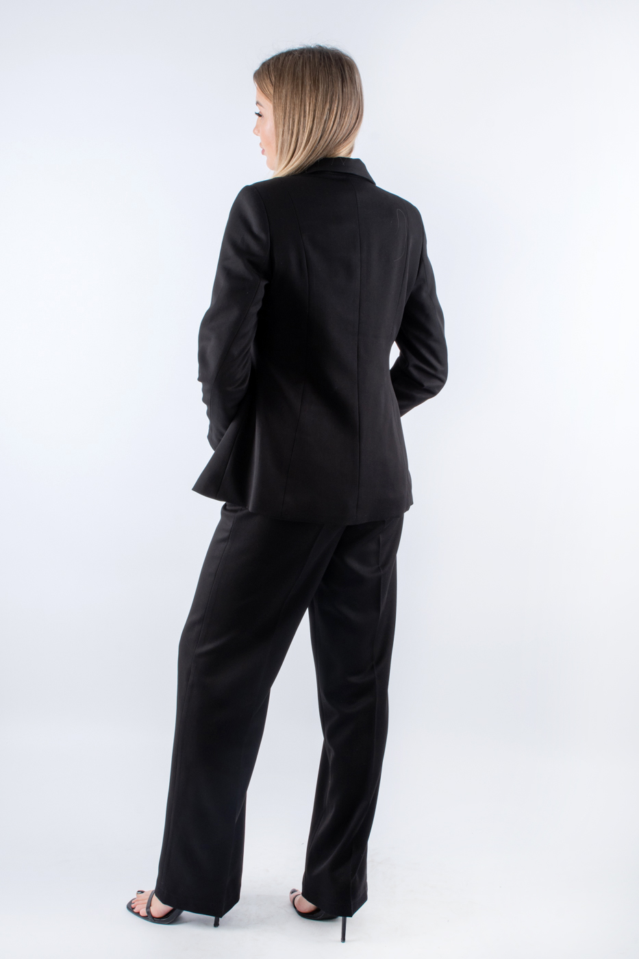 Представляємо вашій увазі вишуканий жіночий класичний брючний костюм, розроблений для тих, хто цінує якість і стиль. Цей чорний костюм з костюмної тканини стане ідеальним доповненням до вашого гардеробу, додаючи елегантності та стриманості вашому повсякденному образу. Завдяки однотонному дизайну і всесезонності, цей костюм відмінно підходить для будь-якої пори року та легко комбінується з іншими елементами гардеробу. Костюм передбачає комфорт та практичність у повсякденних ситуаціях, підкреслюючи вашу індивідуальність та бездоганний смак.