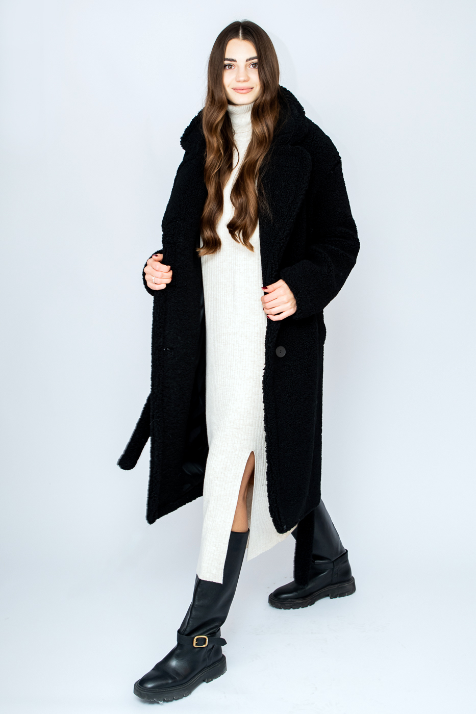 22174 Шуба тедді з еко-хутра чорна