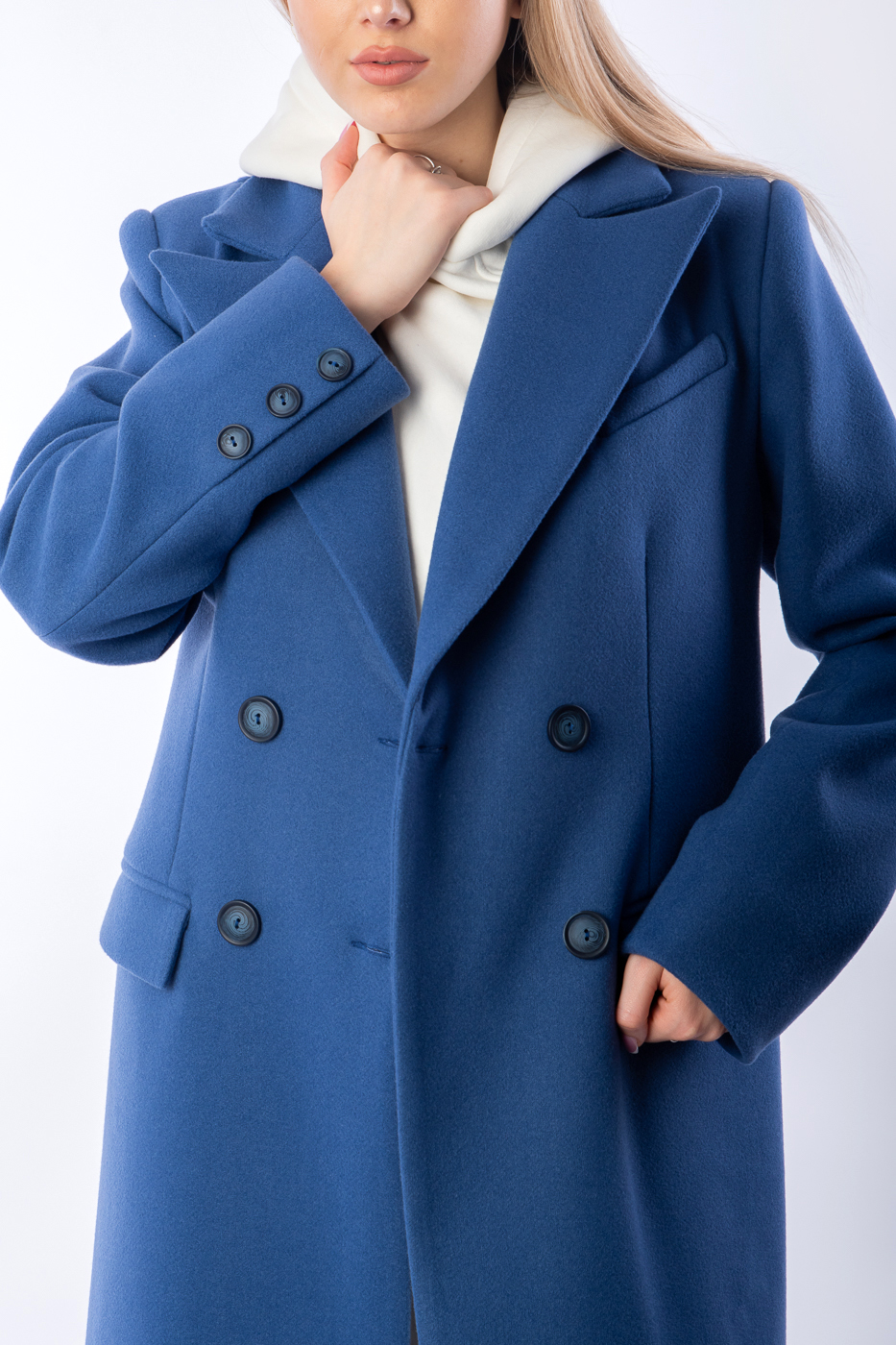 Пальто класичне двобортне з кашеміру, на підкладі також присутні накладні кишені. Дана модель буде мати шикарний вигляд як під низьке взуття так і під підбори.