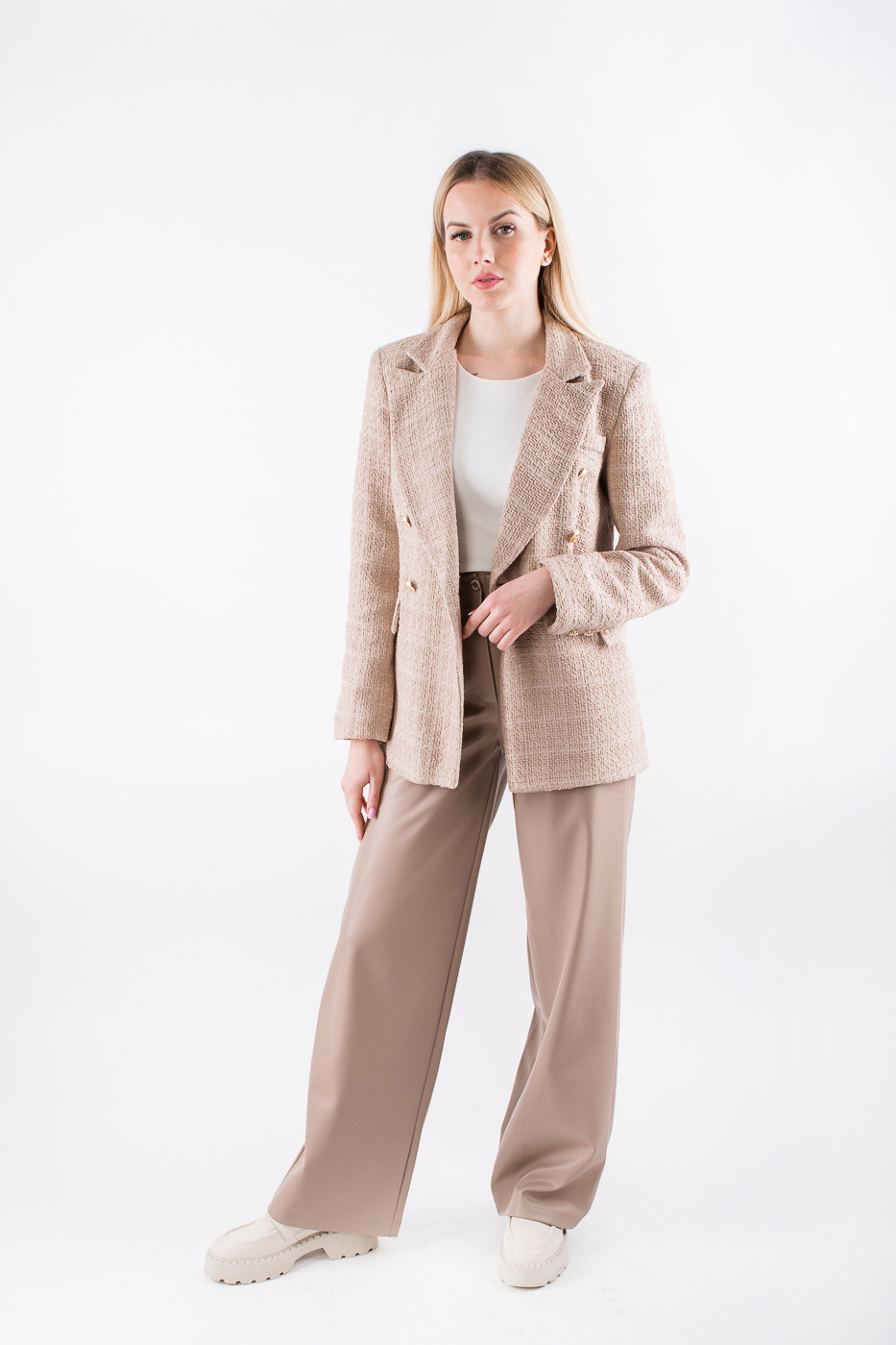 Насолоджуйтесь повсякденним, але стильним виглядом з цим чудовим піджаком! Виключно виготовлений зі бавовни , поліестру та віскози, цей піджак є бездоганною комбінацією комфорту та моди. Характеризується демісезонним сезоном, він робить його найкращим вибором як для весни, так і для осені. Металеві гудзики додають доповнюючого шарму, доповнюючи двобортній дизайн. Цей молочний піджак є ідеальним шиком для вас, якщо ви шукаєте щось, що легко комбінується з будь-яким одягом і підходить до будь-якої ситуації! Не пропустіть шанс заповнити свій гардероб цим чудовою купівлею від нашого інтернет-магазину жіночого одягу!
