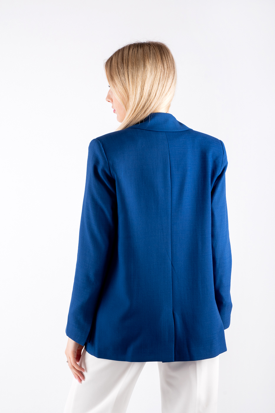 Прямий крій – особлива «фішка» цієї моделі. Рукав з невелики розрізами по ноизу, повної довжини чудово закриває руку. Вільний силует в області талії робить жакет універсальним у поєднанні з іншими деталями гардеробу.