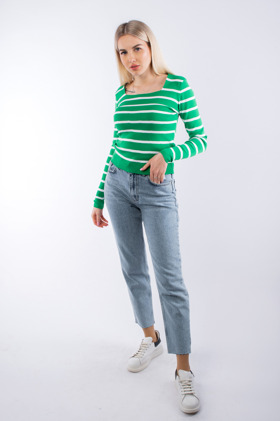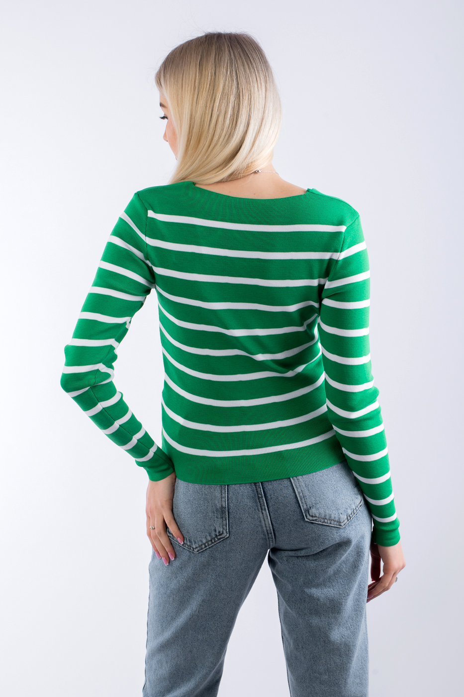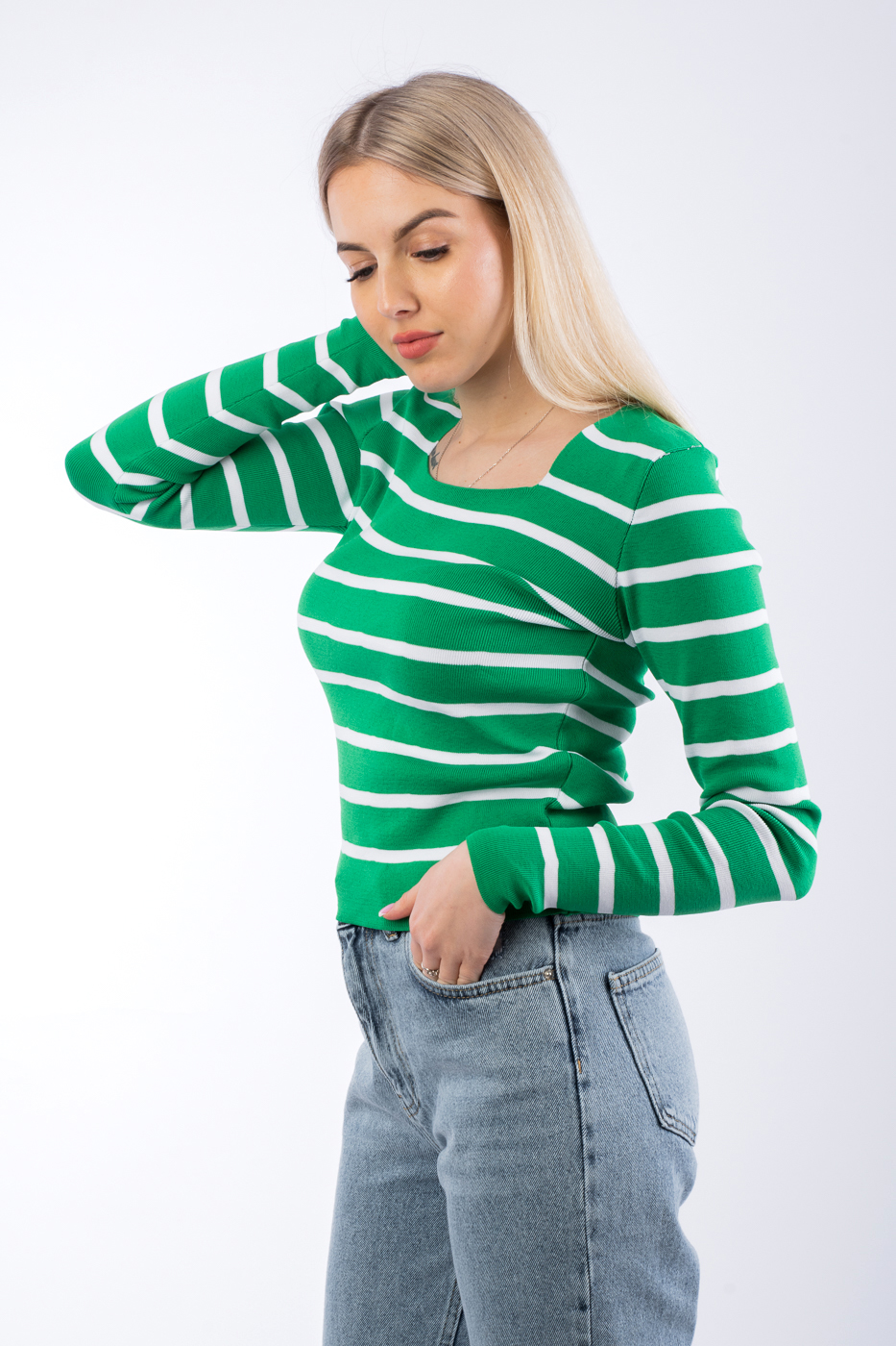 3149 Пуловер з квадратниним вирізом зелено-білий