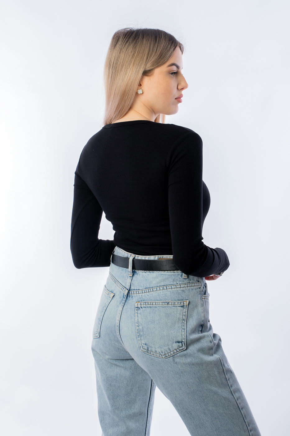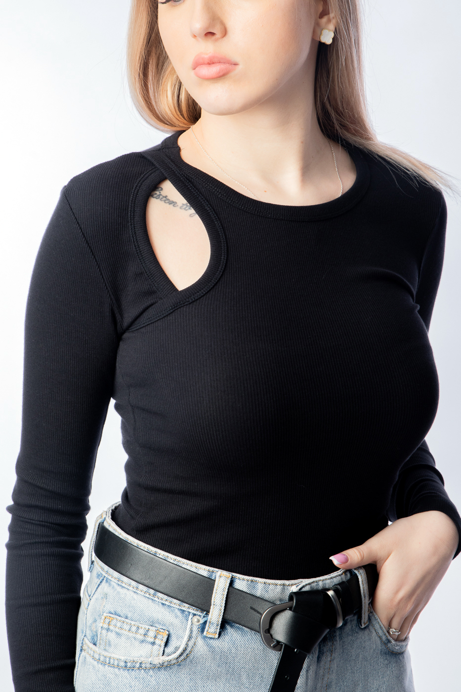 4724 Пуловер з вирізом на плечі чорний