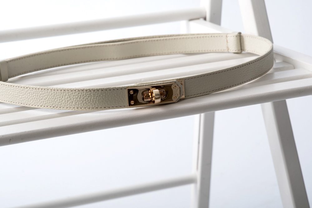 20001 Ремінь шкіряний молочний з пряжкою золото