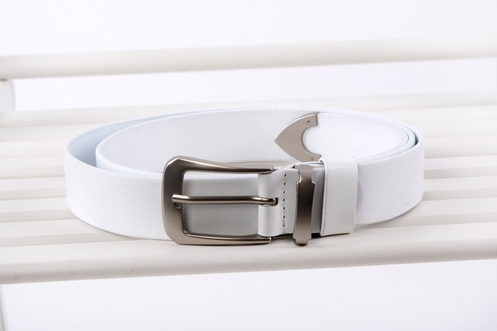20002 Ремінь шкіряний білий з пряжкою сатин