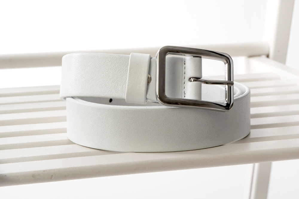 20003 Ремінь шкіряний білий з пряжкою сатин