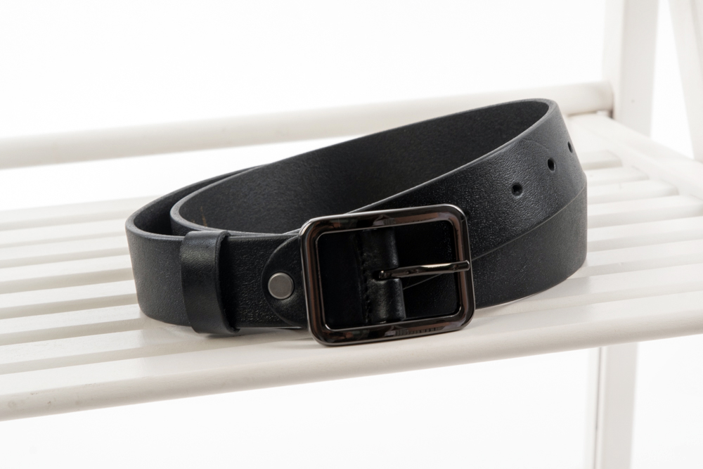 20003 Ремінь шкіряний чорний з пряжкою чорною