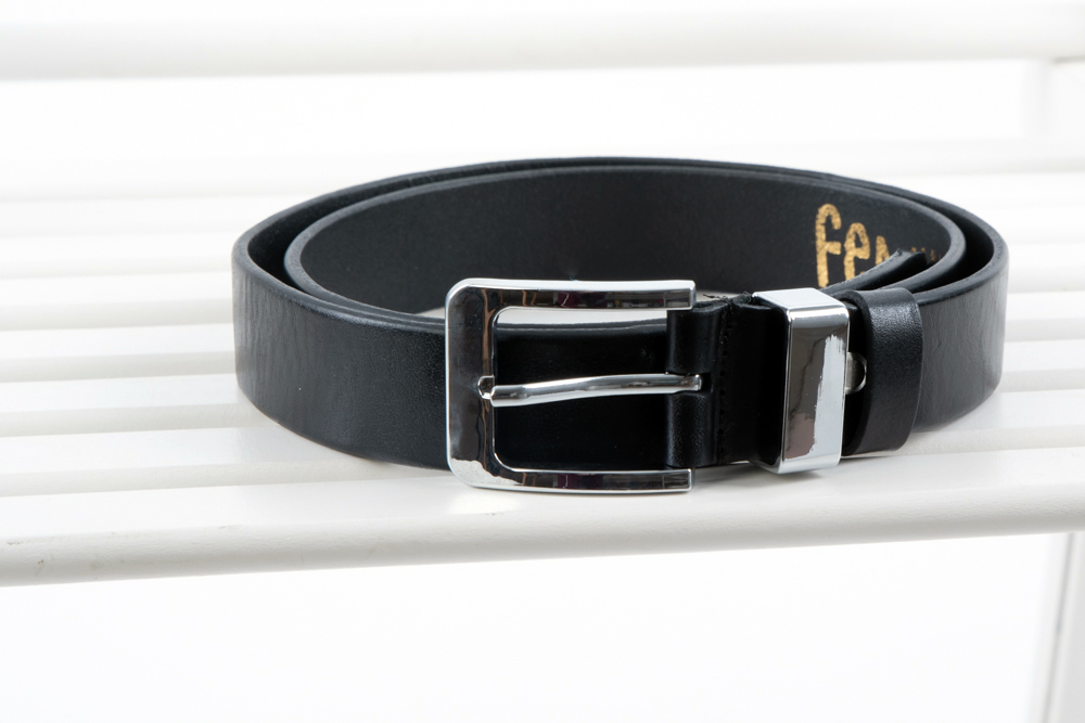 3012 Ремінь шкіряний чорний з пряжкою хром