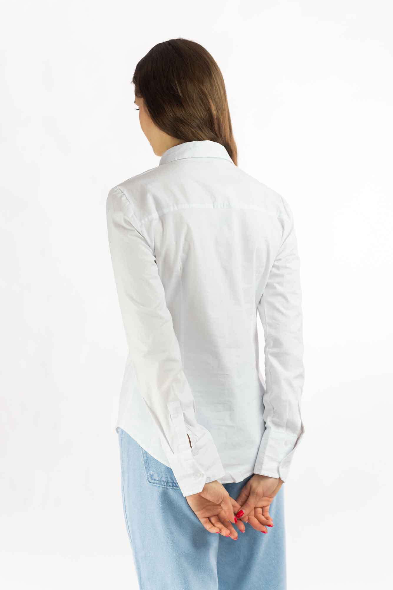 Ця новинка з напівкруглим низом. Довгі рукави доповнені манжетами на двох ґудзиках. Застібається сорочка спереду на ряд гудзиків. а кругла горловина з класичним сорочковим коміром на стійці.