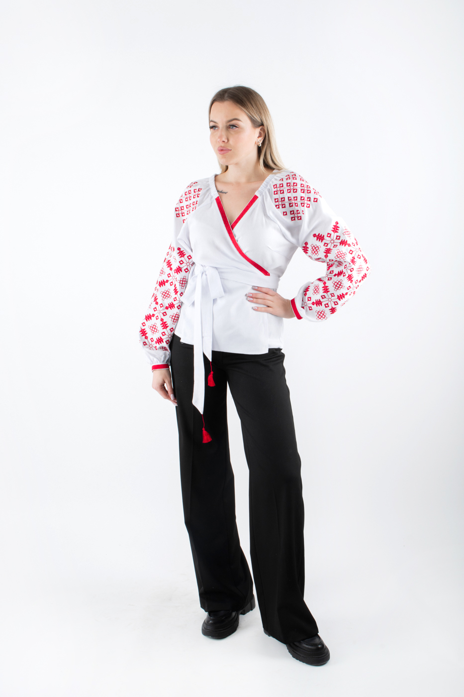 Представляємо вам стильну жіночу сорочку у популярному етно-casual стилі, яка стане ідеальним доповненням вашого гардероба на сезон весна/осінь. Ця біла однотонна сорочка виконана з бавовни та поліестру, що забезпечує комфорт та легкість у носінні. Основною родзинкою моделі є унікальне червоне оздоблення у вигляді вишивки, яке додає традиційного українського шарму. Така жіноча вишиванка підходить для різноманітних повсякденних образів і чудово поєднується з джинсами або спідницями. Обирайте якість та стиль з нашими вишуканими сорочками!