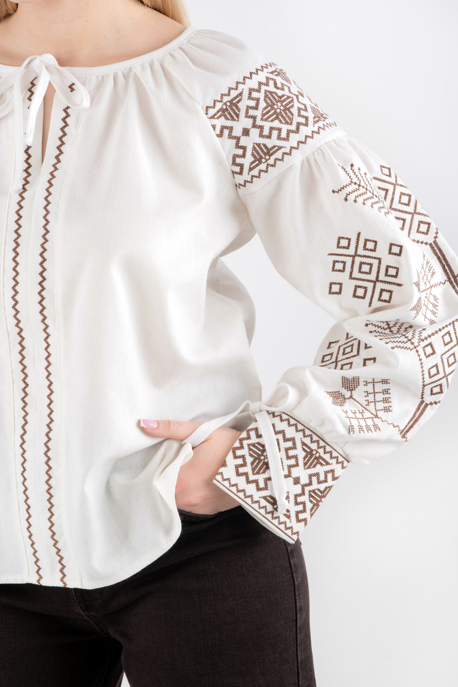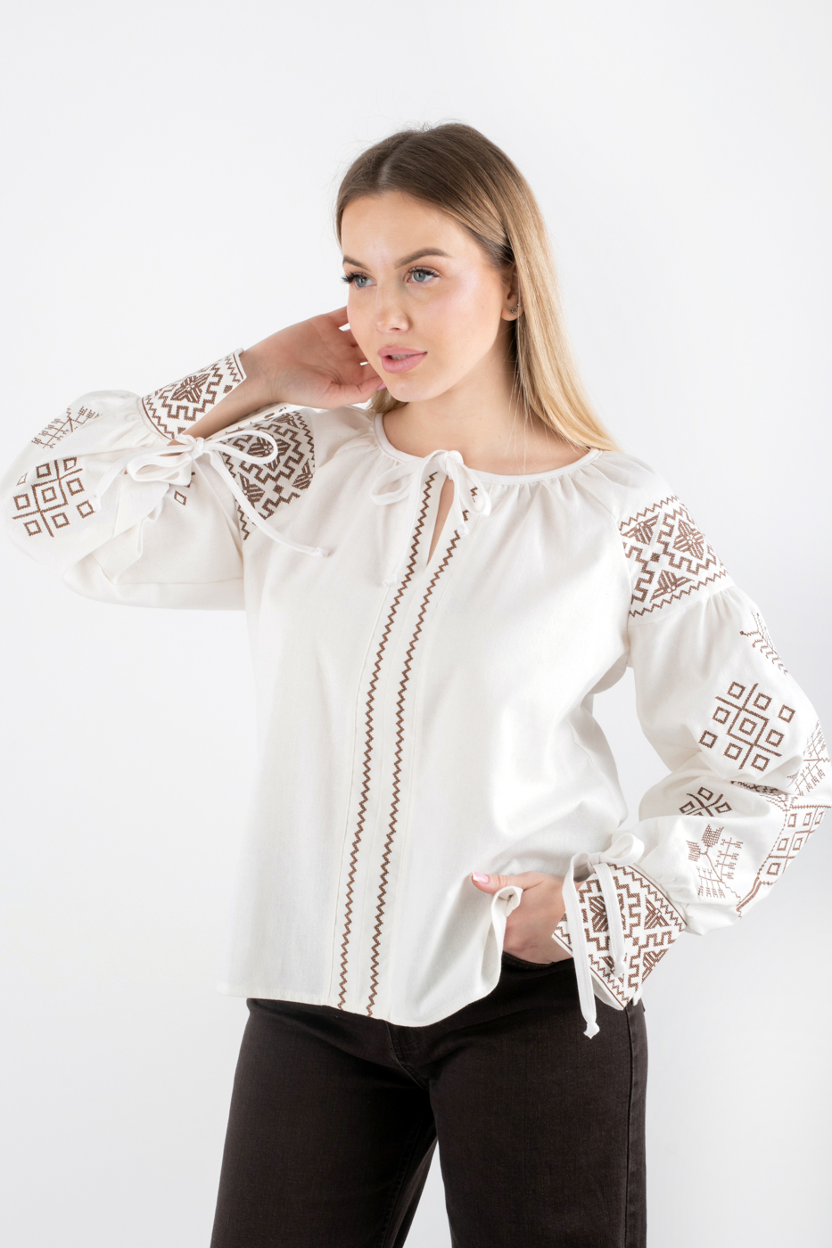 35212 Сорочка вишиванка з завʼязками молочна