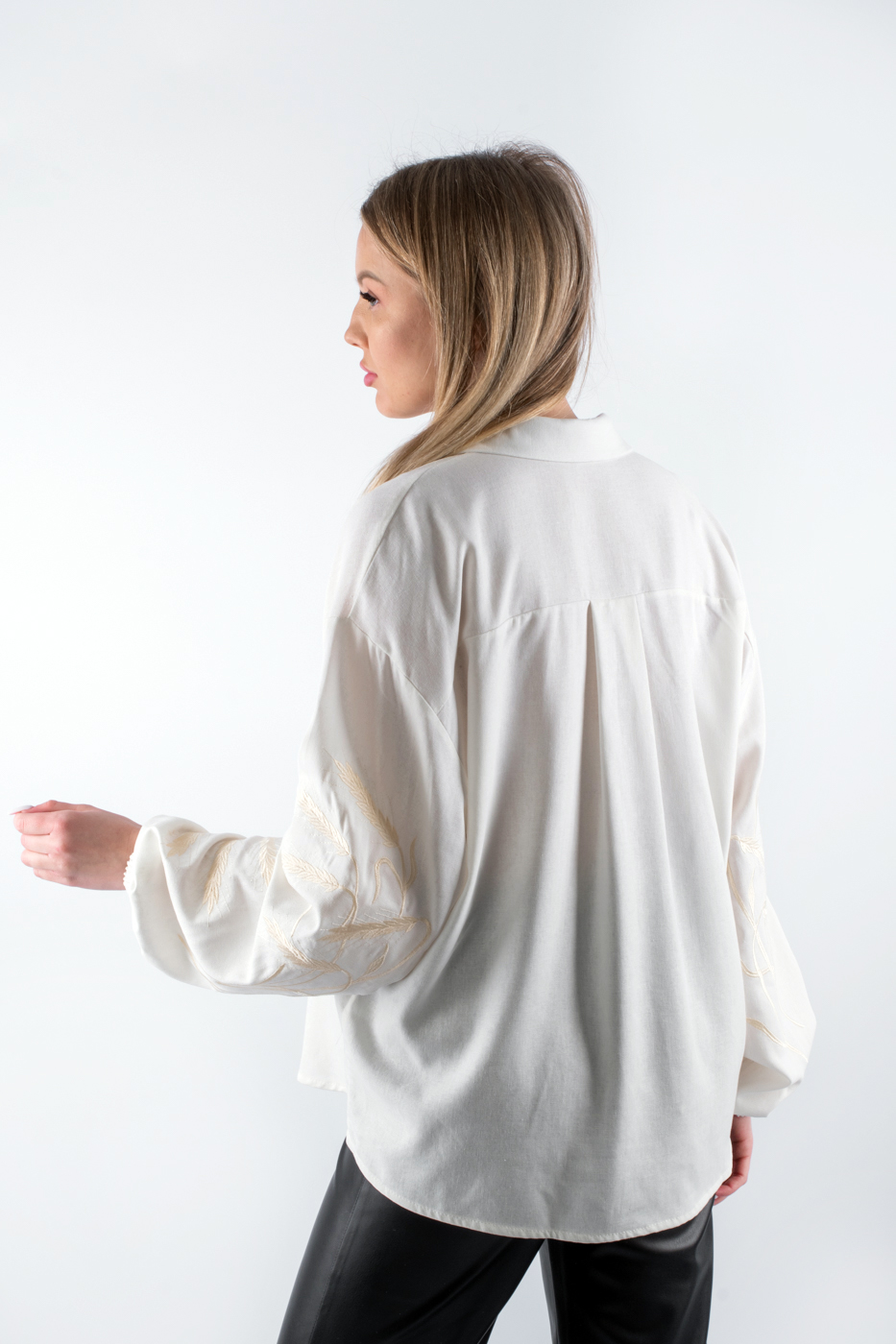 35501 Вишиванка з золотим оздобленням колосок молочна