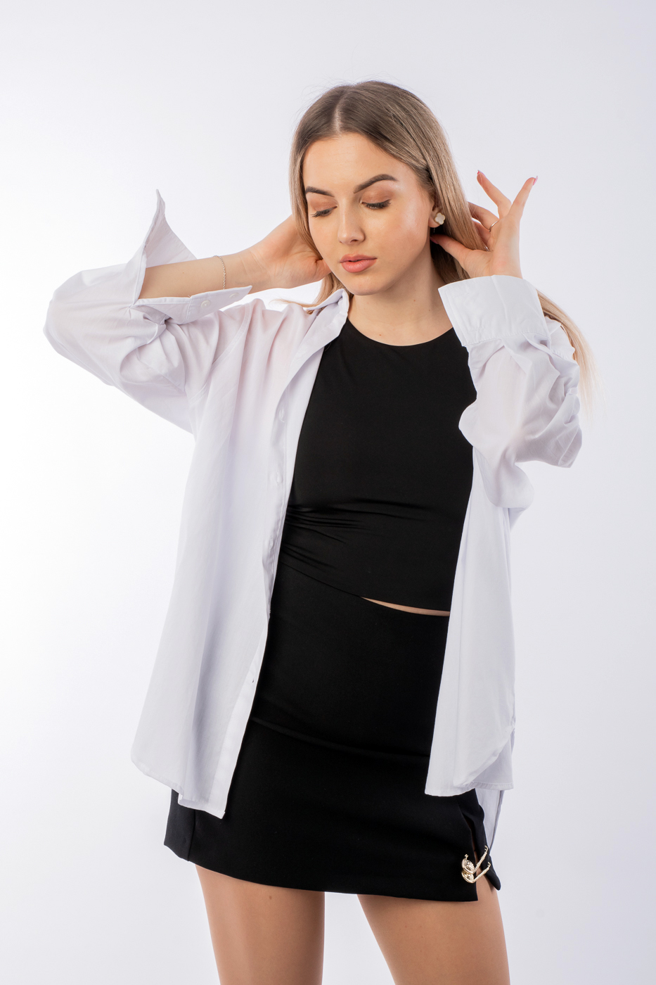 3928 Сорочка з подовженою спиною біла