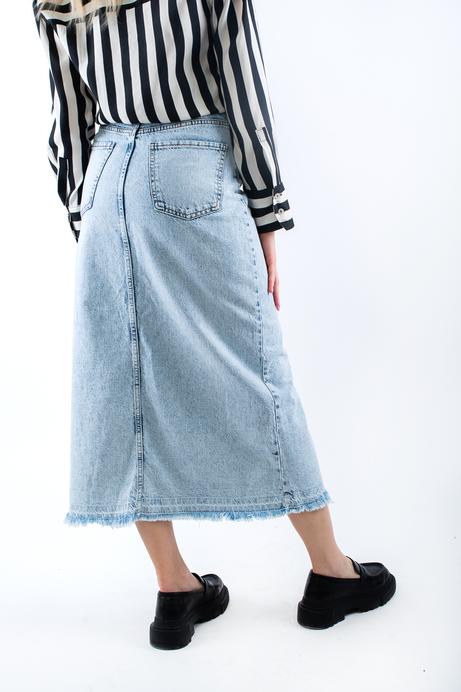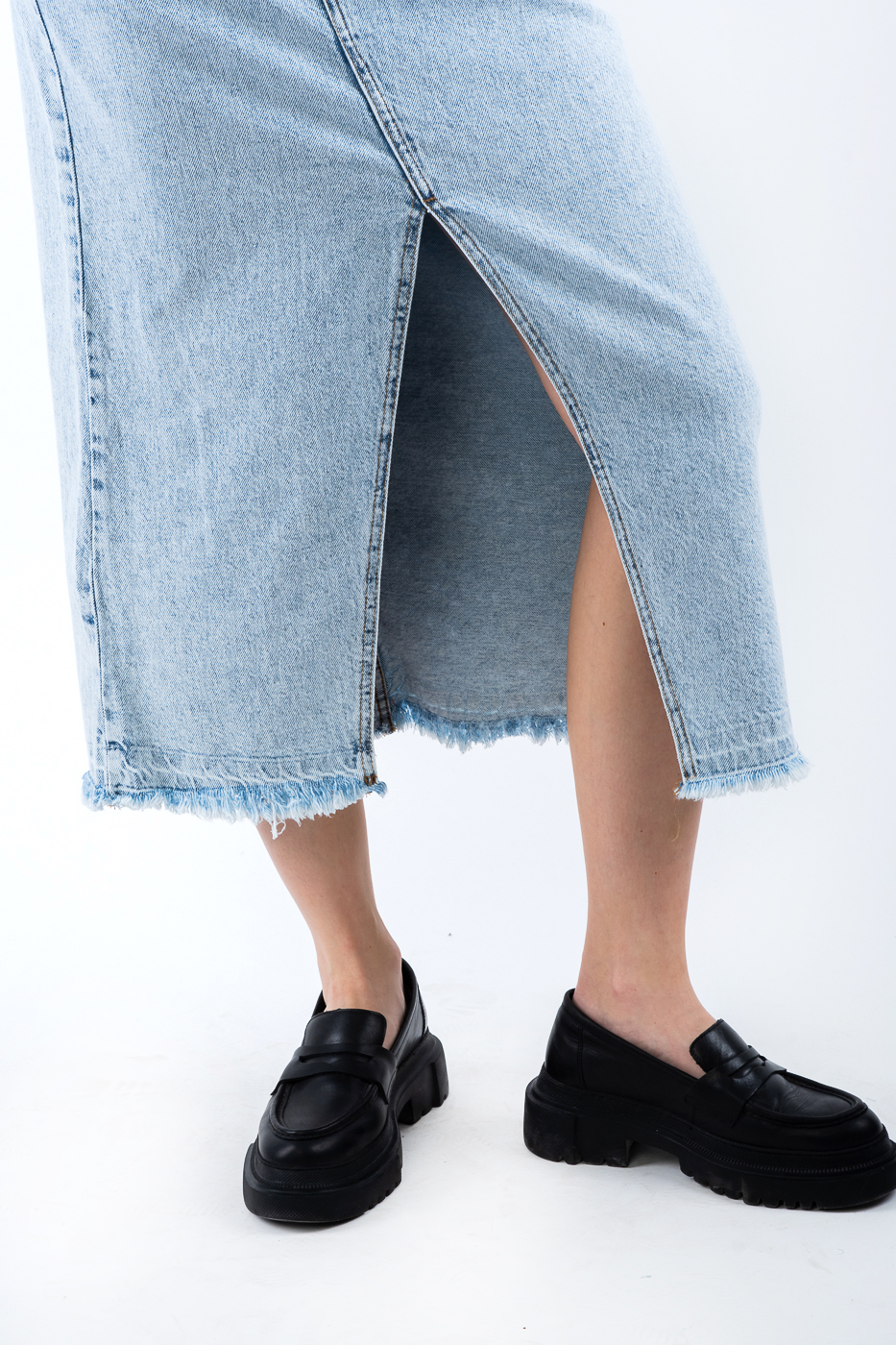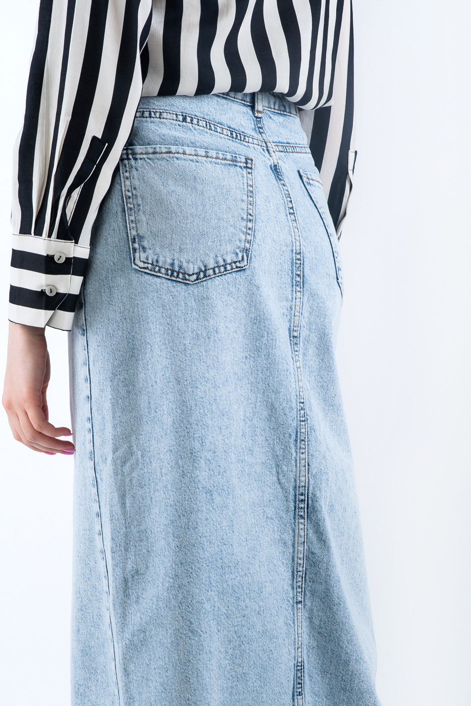 2668-4S4 Спідниця джинсова з розрізом блакитна