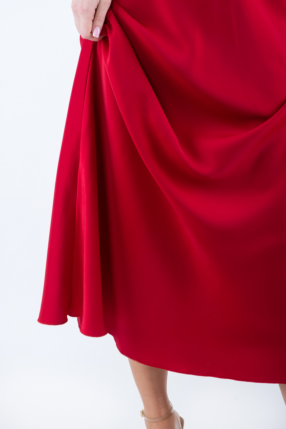 Ця стильна жіноча спідниця в білизняному стилі - ідеальний вибір для вашого повсякденного гардеробу. Виконана з шовку, вона має приємний на дотик матеріал, що дарує комфортність протягом усього дня. Спідниця міді яскравого червоного кольору з однотонним дизайном підійде для створення стильних образів в будь-який демісезонний період. Вільний крій спідниці забезпечує зручність рухів, а елегантна довжина додає впевненості та жіночності вашому стилю. Ідеальна для тих, хто цінує комфорт і модні тенденції.