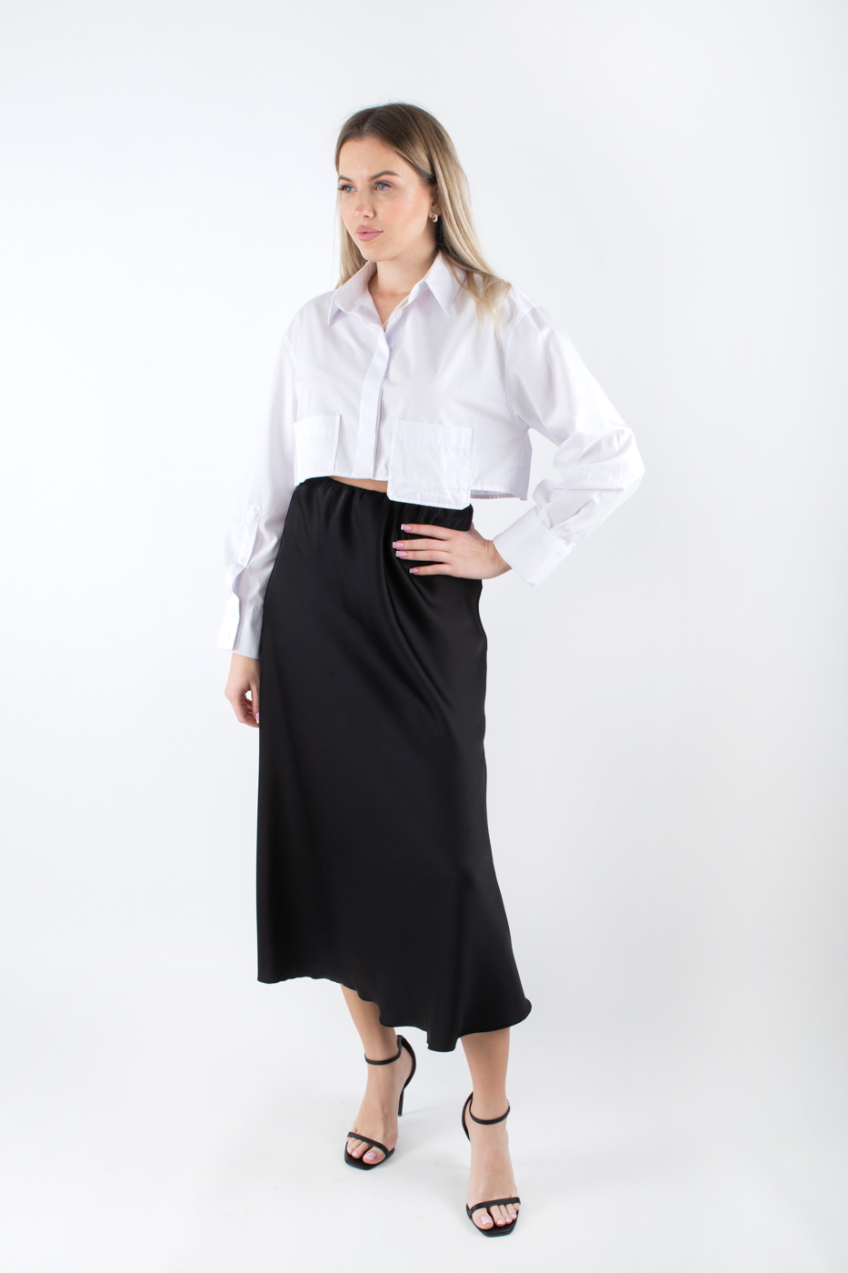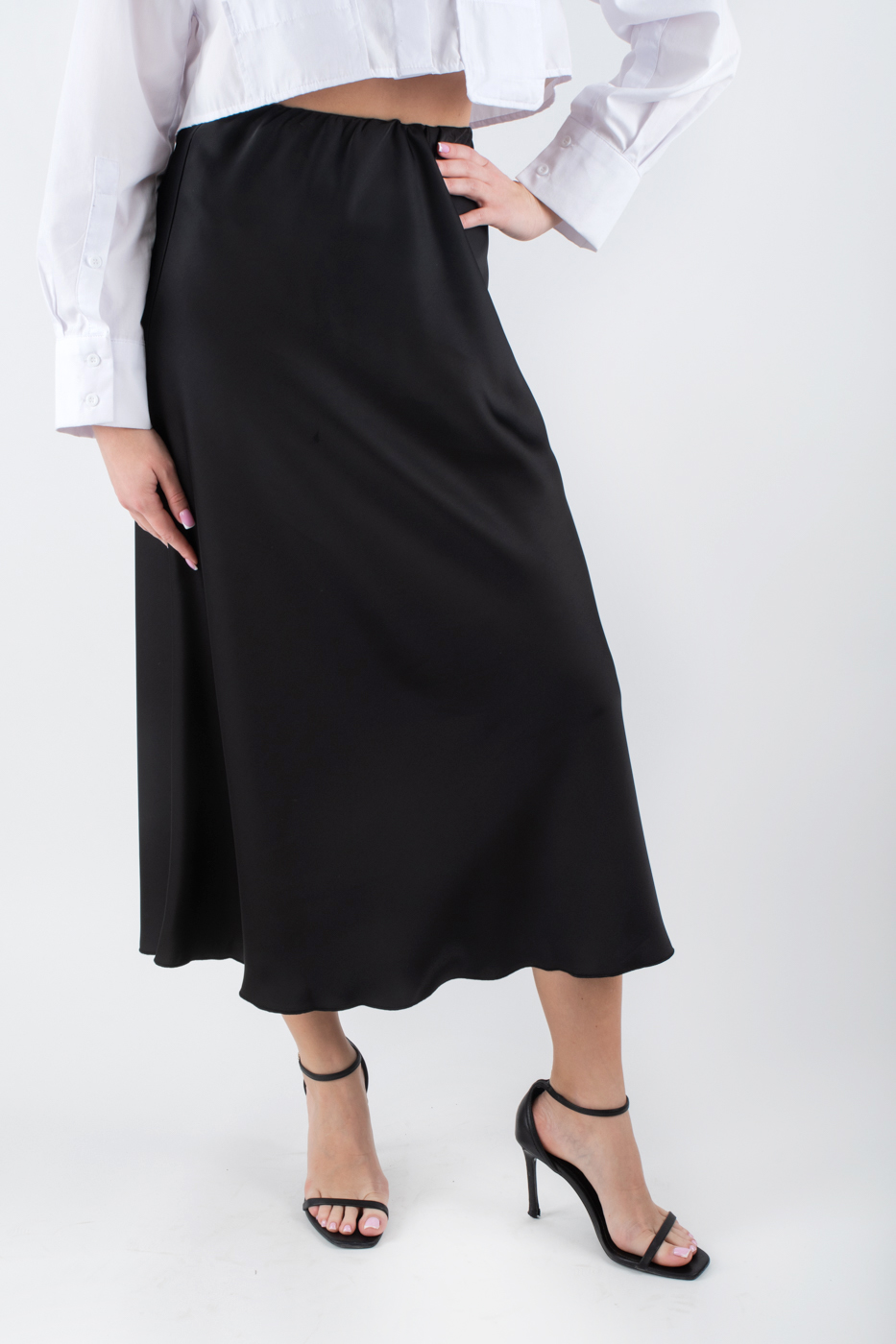 81456 Спідниця міді в білизняному стилі чорна