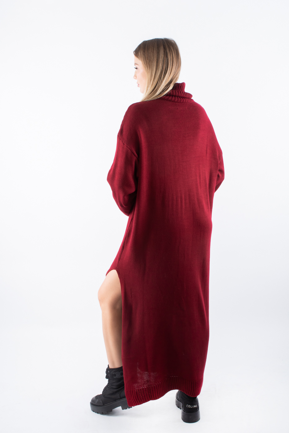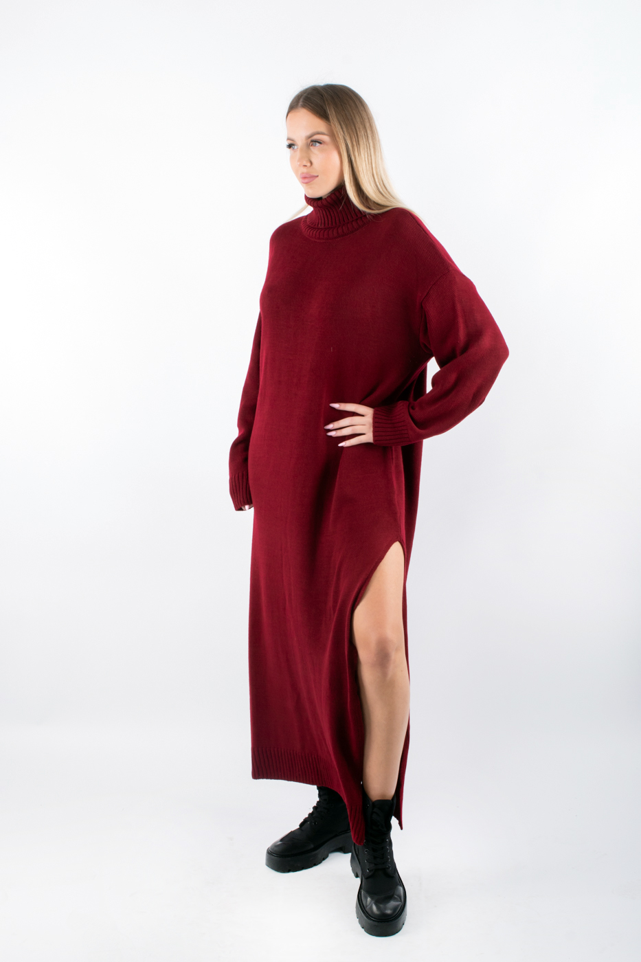 Представляємо вам стильне жіноче плаття максі в кольорі бургунді, яке стане чудовим доповненням до вашого зимового гардеробу. Це в'язане трикотажне сукня має прямий крій, що робить його універсальним варіантом для будь-якого випадку, підкреслюючи ваш смак і відчуття стилю. Однотонний дизайн додає елегантності та вишуканості, а висока горловина забезпечує додатковий комфорт у холодні дні. Ідеальне для повсякденного носіння, це плаття пропонує неперевершене поєднання моди та зручності, дозволяючи вам виглядати чудово навіть у найсуворіші зимові дні.