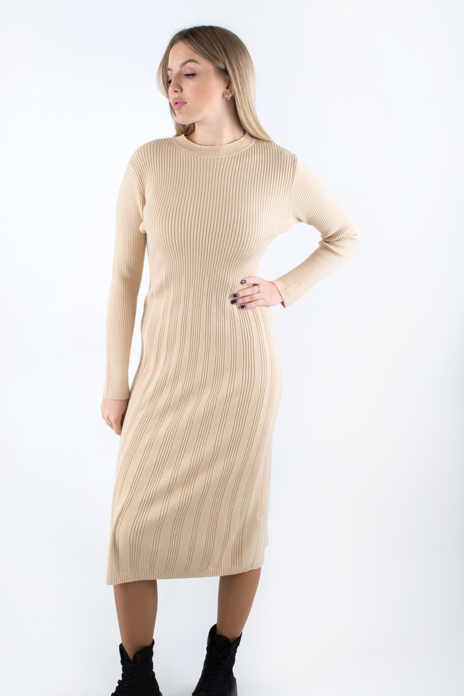 83082 Плаття міді з декоративною вʼязкою бежеве