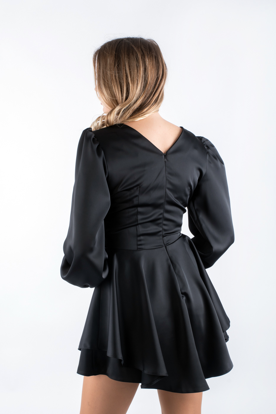 83111 Сукня міні шовкова з вирізом чорна
