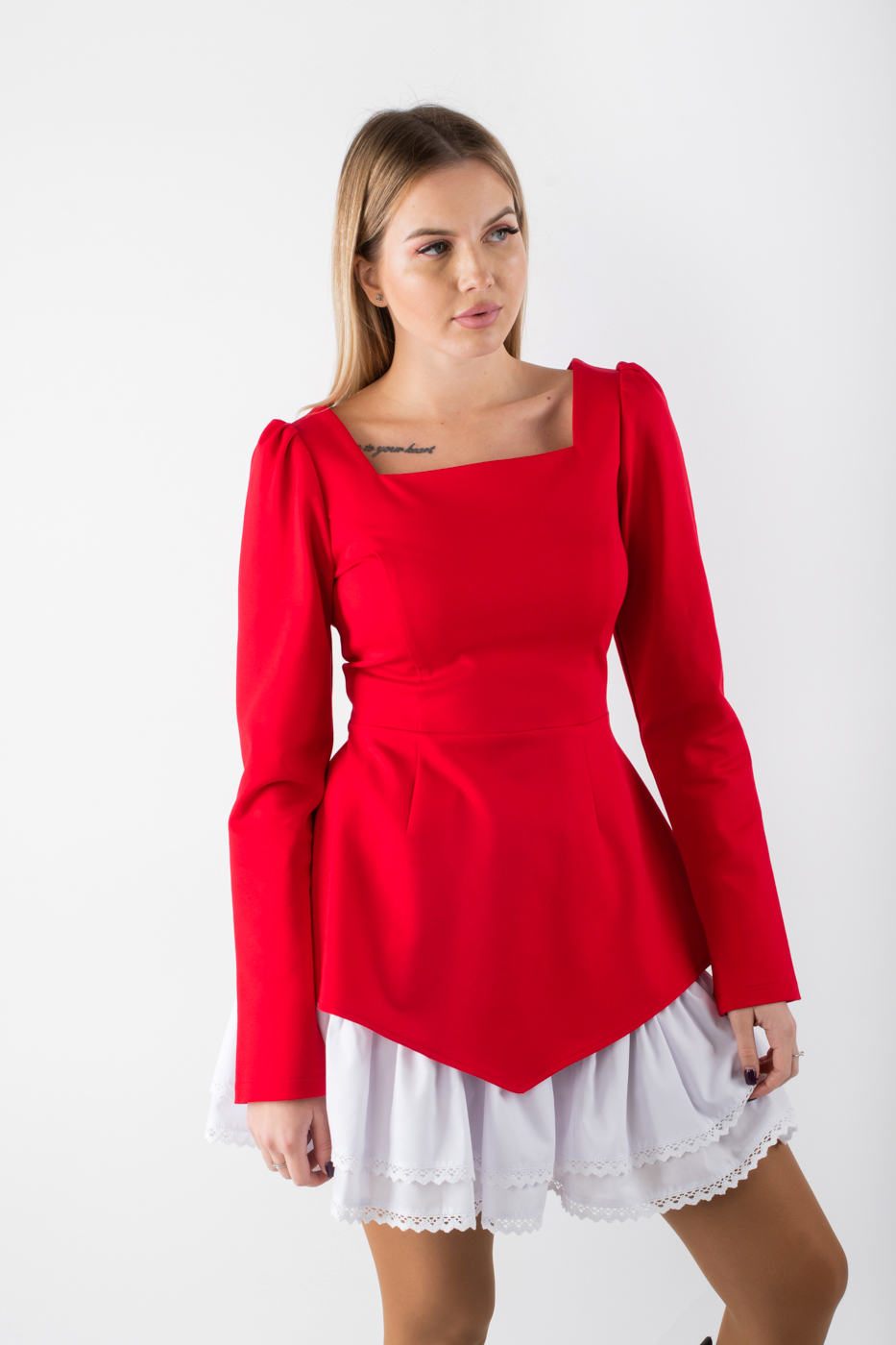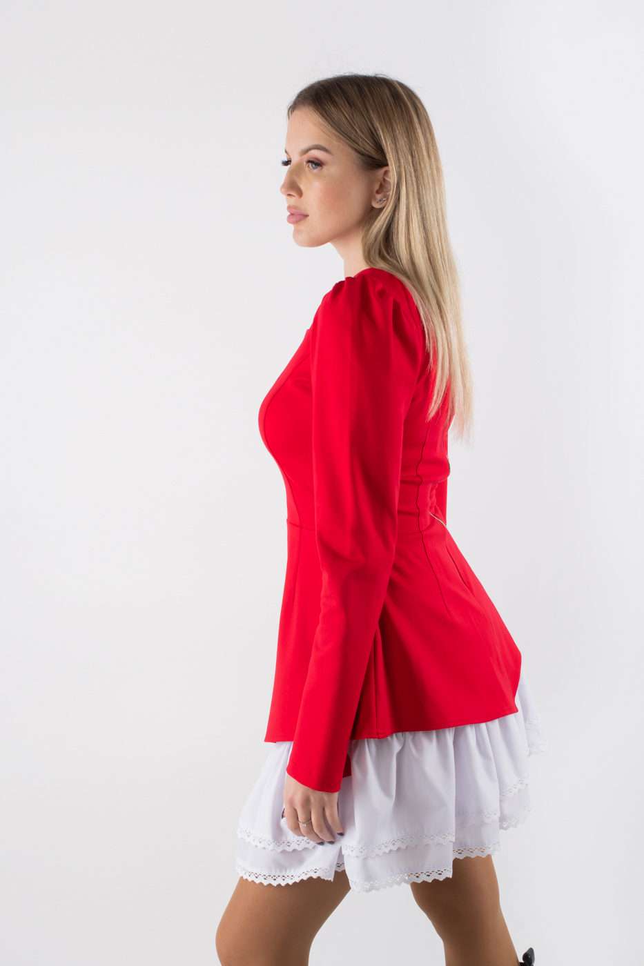 83445 Плаття міні з мереживною спідницею червоне