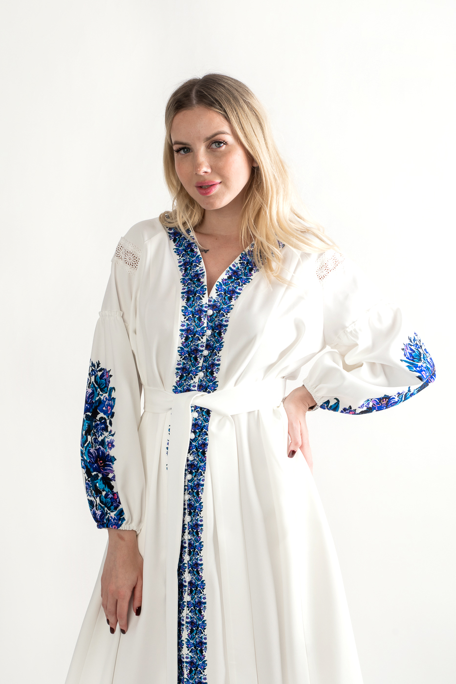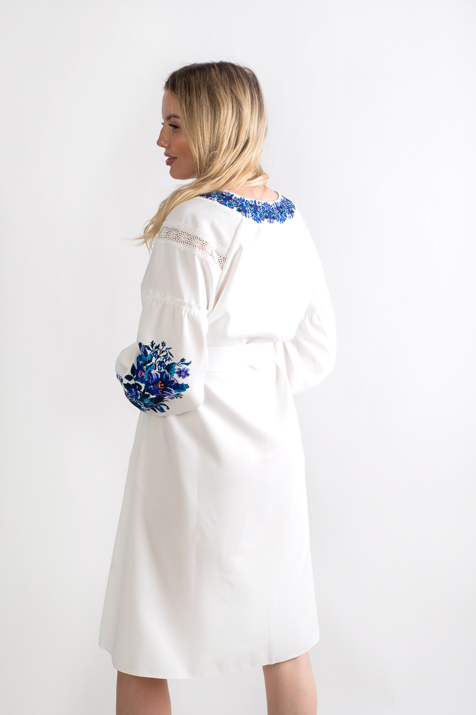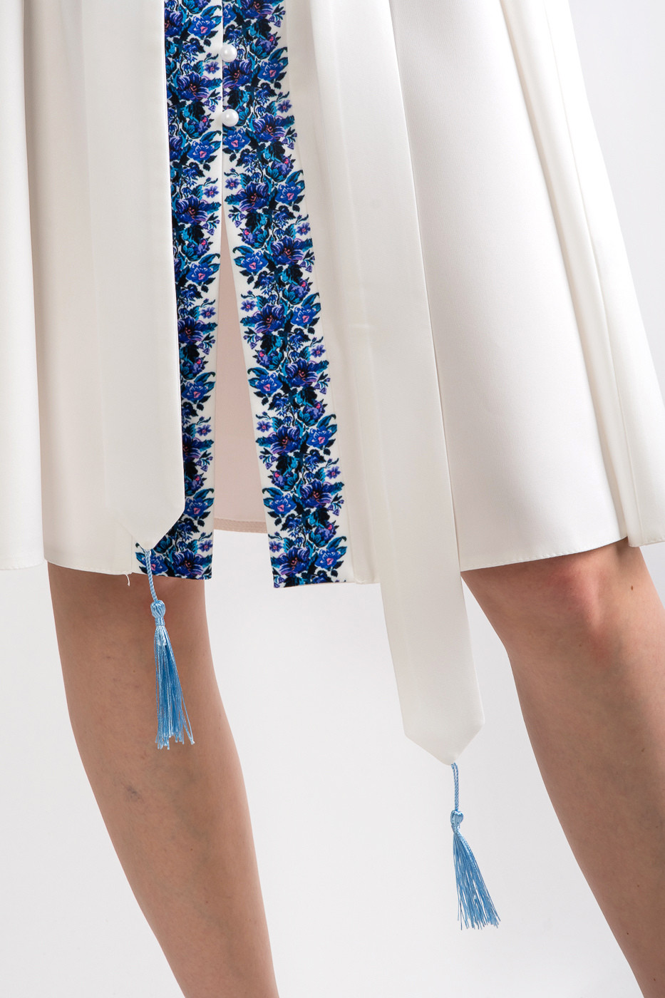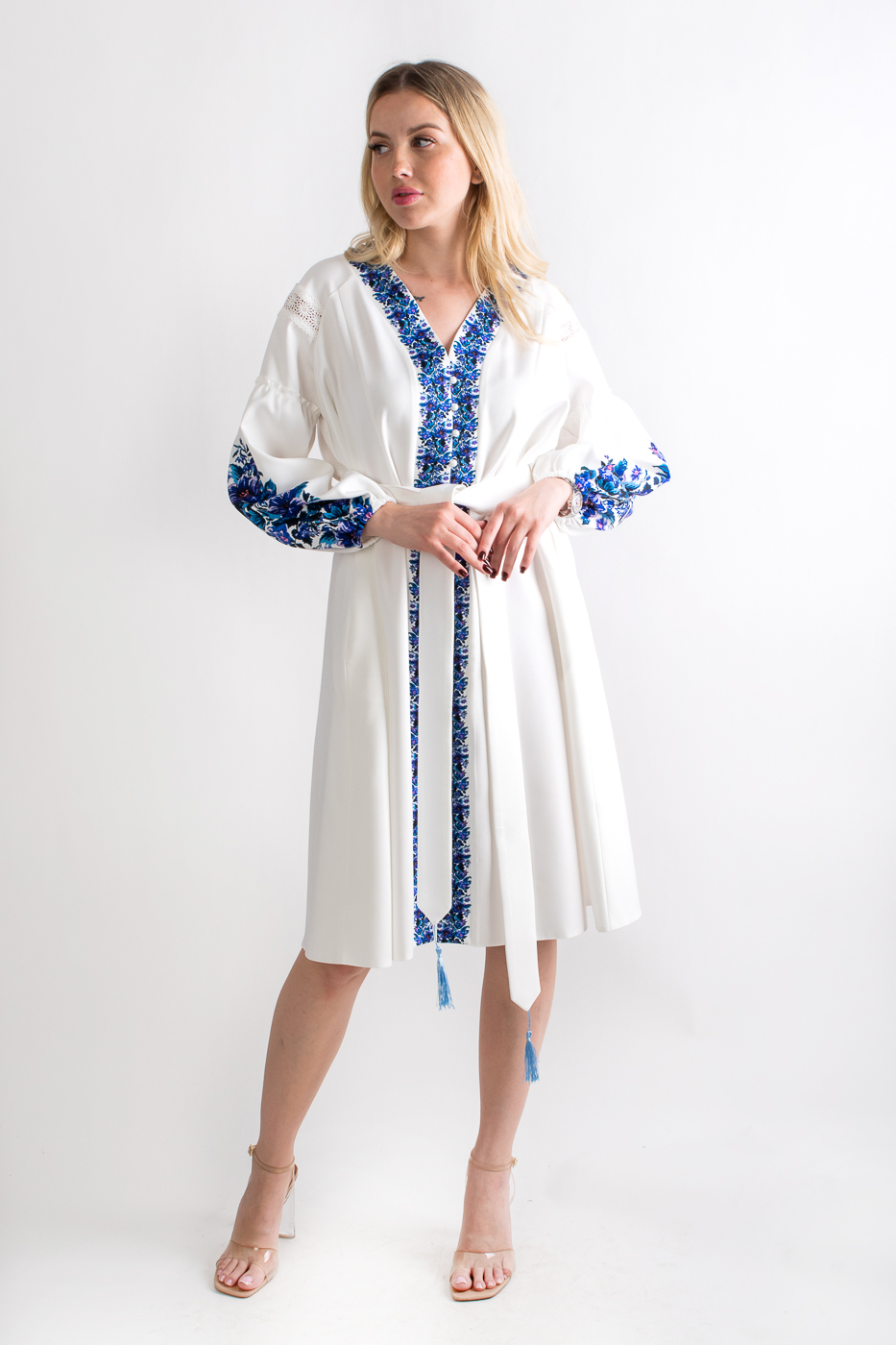 Прекрасна жіноча сукня з принтом та поясом - ідеальна вибір для святкового вбрання. Вільний крій забезпечує комфортність та зручність під час носіння. Виконана з костюмної тканини в демісезонних кольорах - білому та синьому. Чудово підійде на будь-який святковий захід, особливо якщо шукаєте стильний та ефектний образ. В цій сукні Ви точно не залишитесь непоміченою!