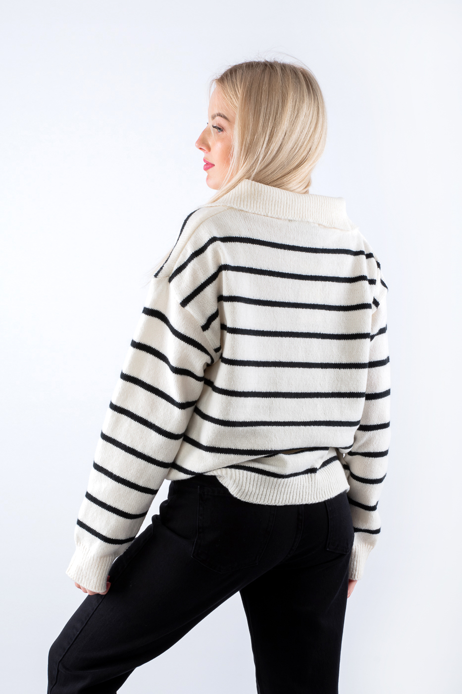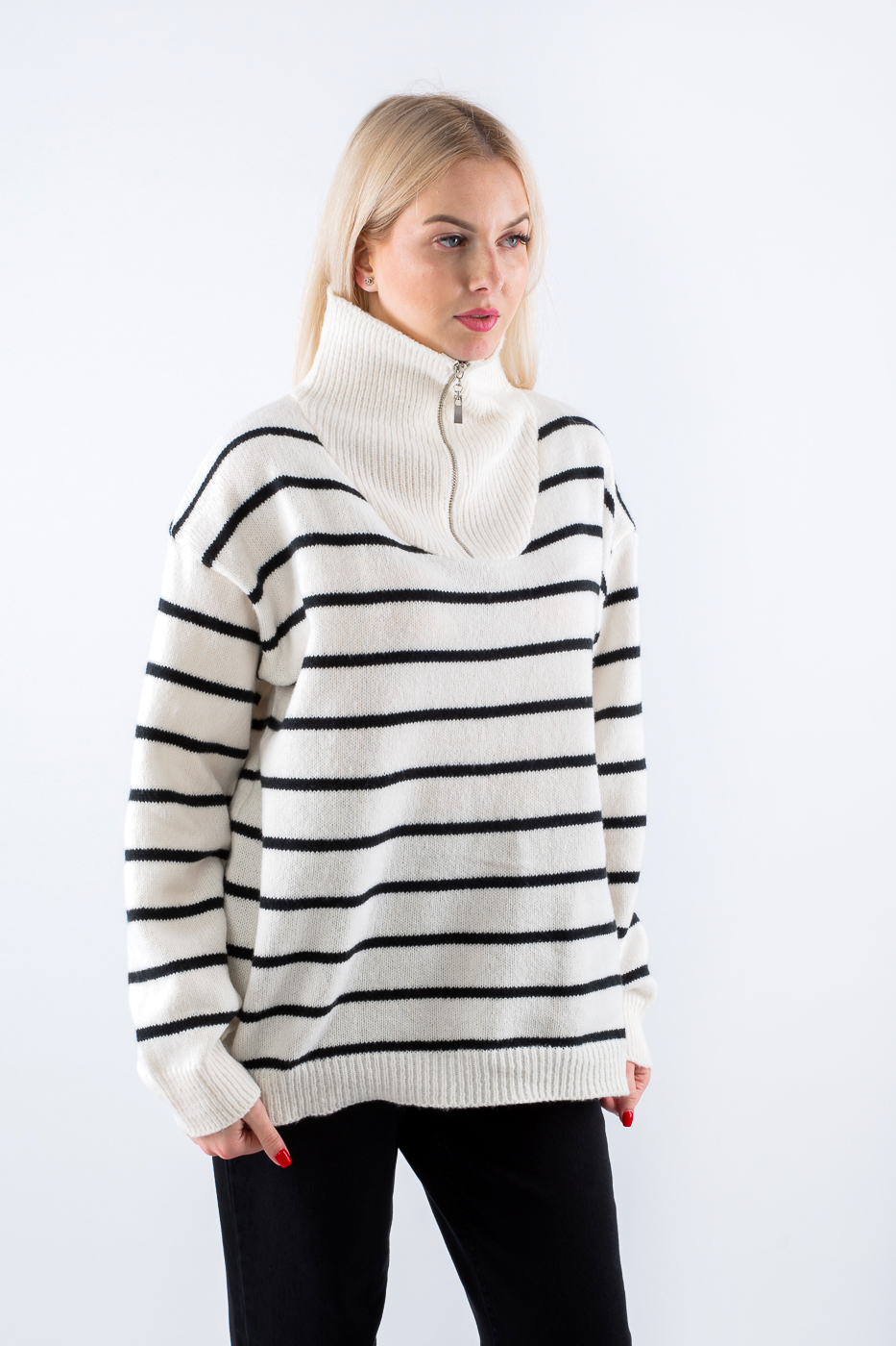 66012 Светр зі змійкою в смужку біло-чорний