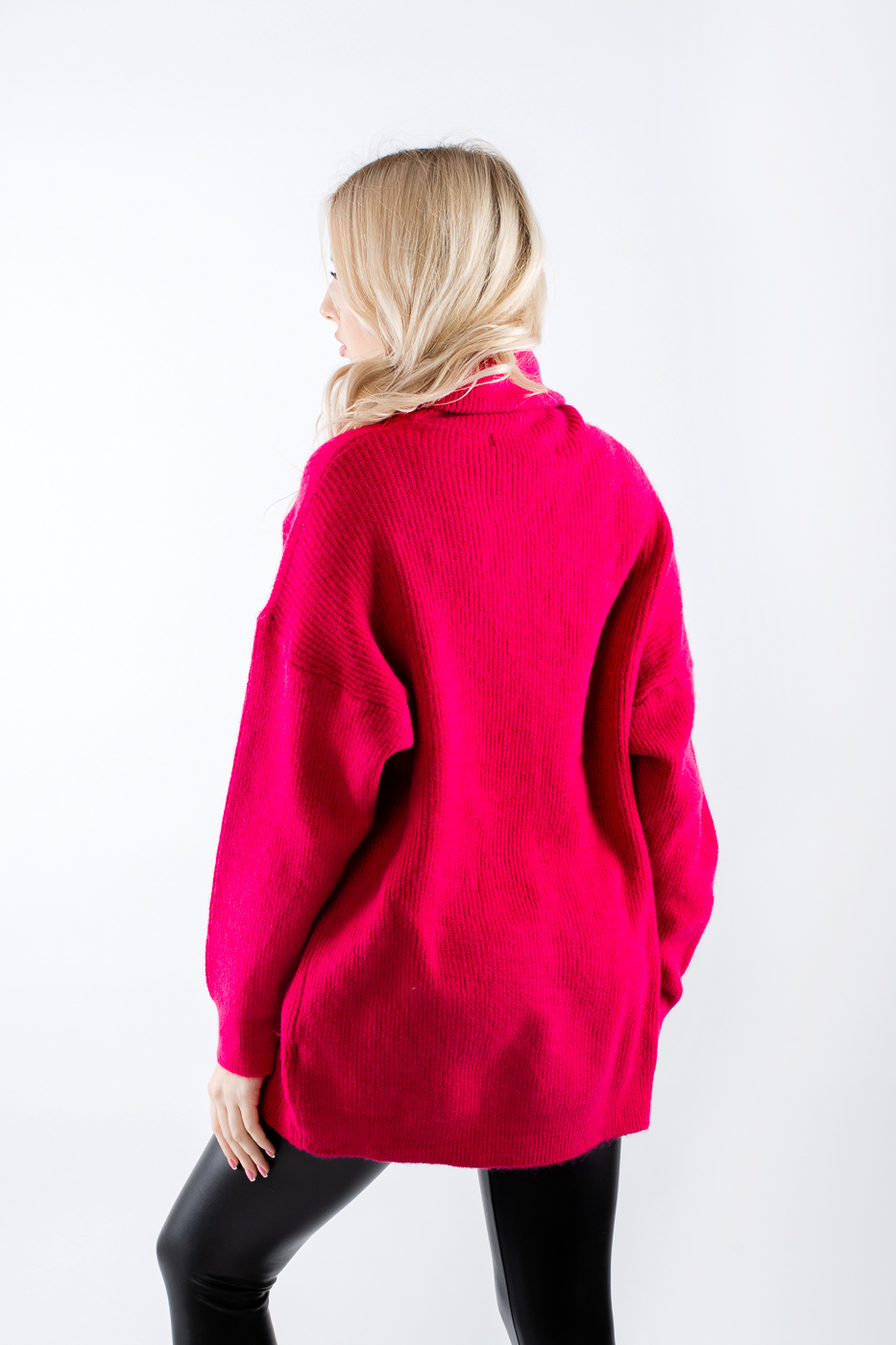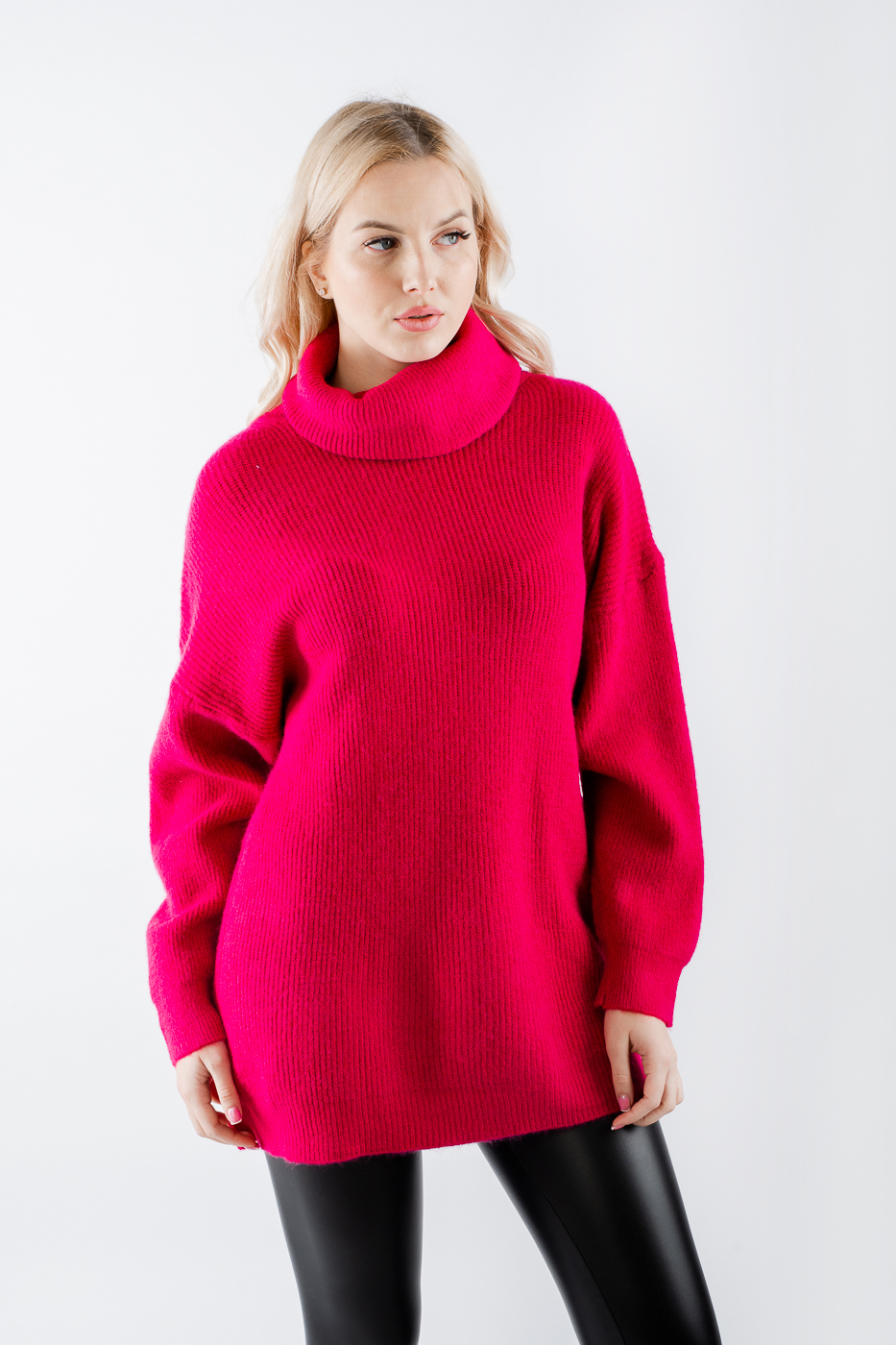66014 Светр оверсайз з високою горловиною фуксія