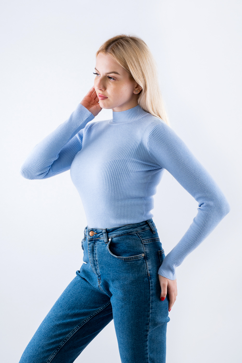 Цей гольф з горловиною стійкою і рубчиком виготовлений з м'якої віскозної трикотажної тканини і має довгі рукави, ідеальний для осіннього сезону. Однотонний дизайн надає йому універсальності, а горловина стійка додає витонченості. Цей гольф забезпечить вам комфорт і стиль, носіть його у повсякденних або більш офіційних образах, завжди виглядаючи на висоті.