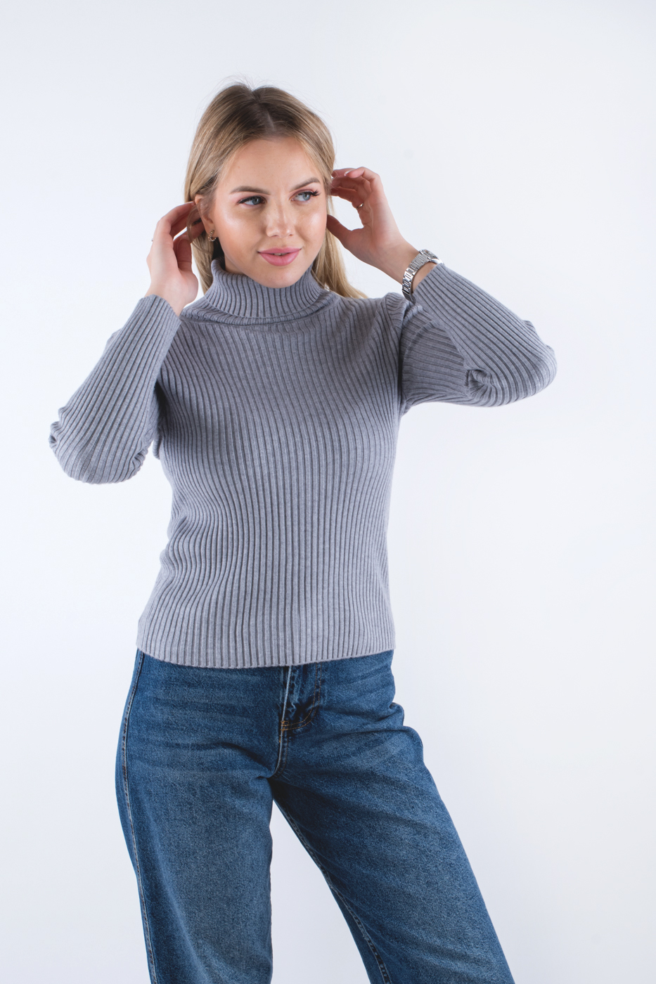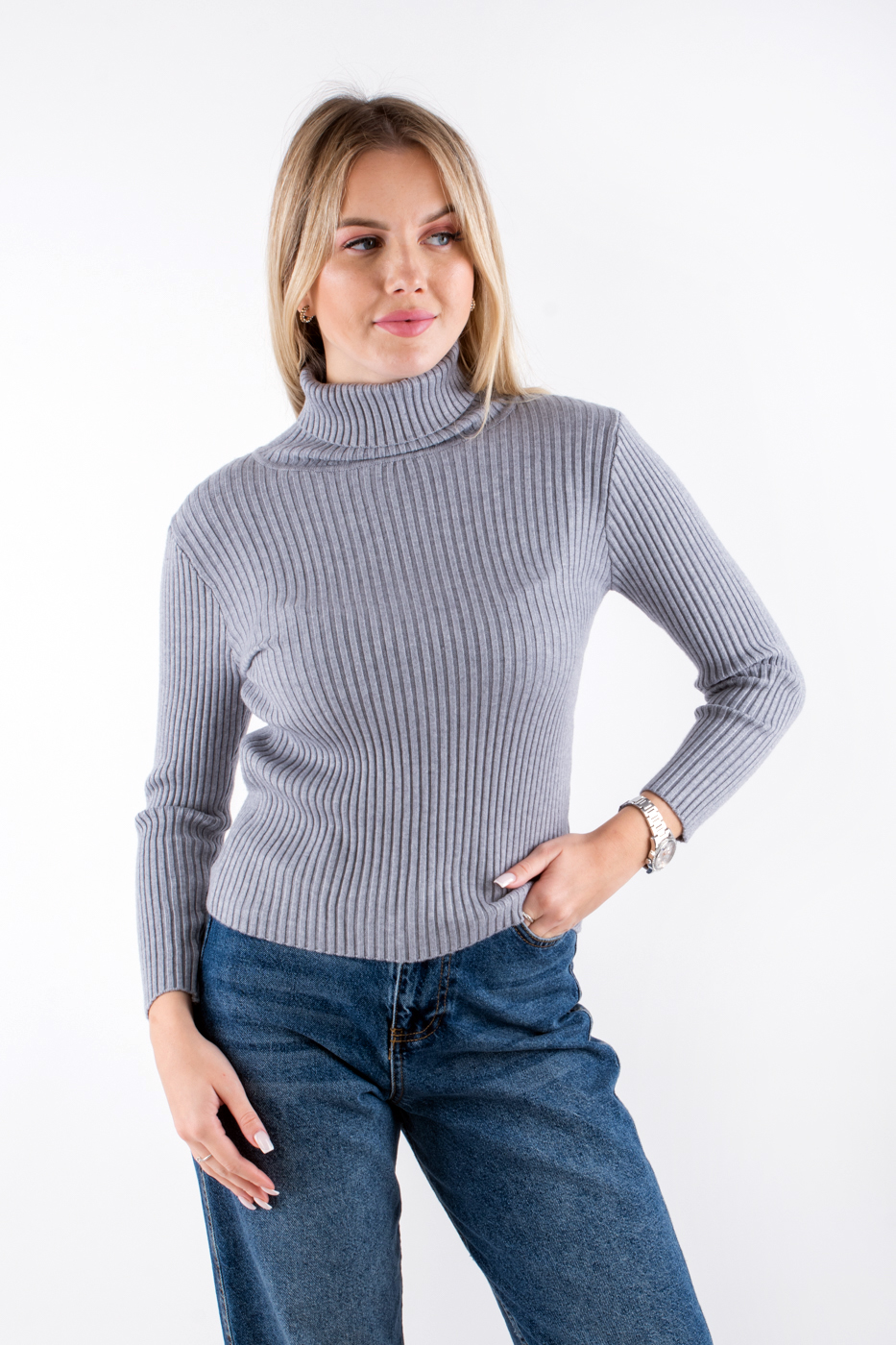 Сірий жіночий гольф в рубчик - ідеальний вибір для створення стильного повсякденного образу в осінній сезон. Ця однотонна водолазка поєднує в собі комфорт та елегантність, що робить її незамінною частиною гардероба кожної модниці. Щільна тканина забезпечує тепло та зручність протягом усього дня, дозволяючи вам виглядати бездоганно в будь-якій ситуації. Универсальний сірий колір легко комбінується з іншими предметами одягу, додаючи вашому образу нотки витонченості та стилю.