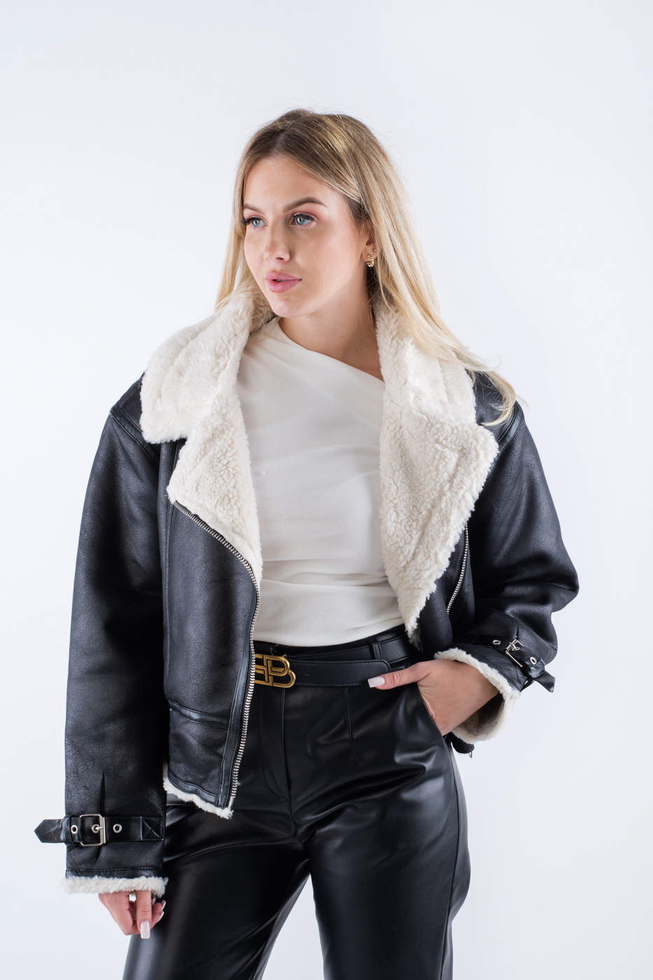 Представляємо вам стильну жіночу зимову куртку-дублянку авіатор, яка стане ідеальним вибором для осіннього сезону. Ця однотонна чорна куртка поєднує в собі елегантність та повсякденний комфорт завдяки своєму напівприталеному крою, що підкреслює вашу фігуру. Виконана із високоякісної замші, вона надає образу вишуканості, а пояс додає акценту на талії, створюючи витончений силует. Ця куртка стане вашим незамінним супутником у холодну пору року, забезпечуючи тепло і стиль кожного дня.